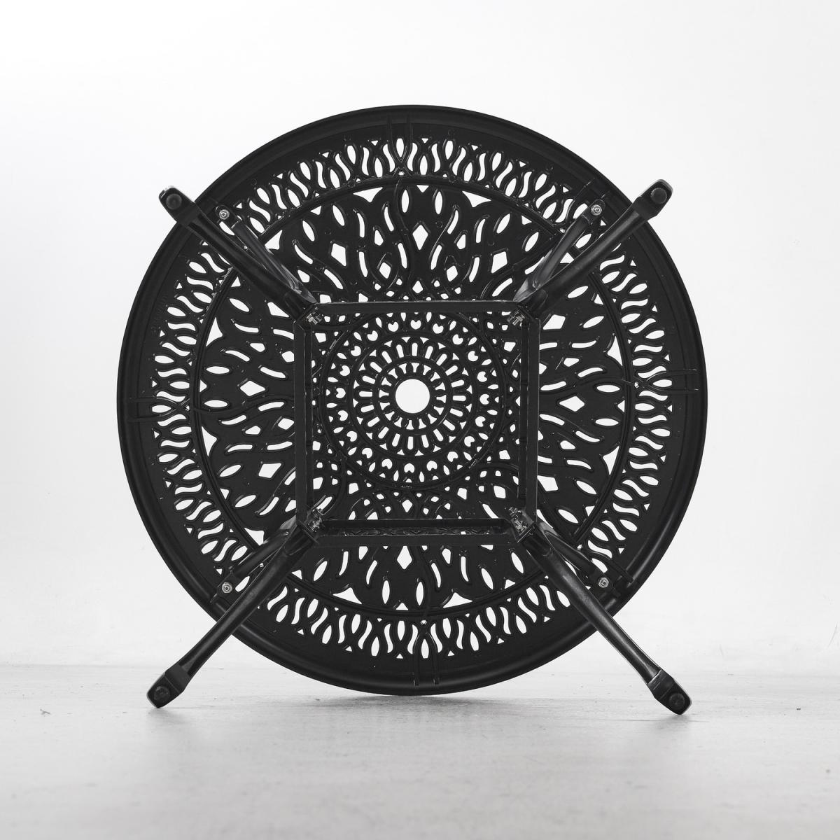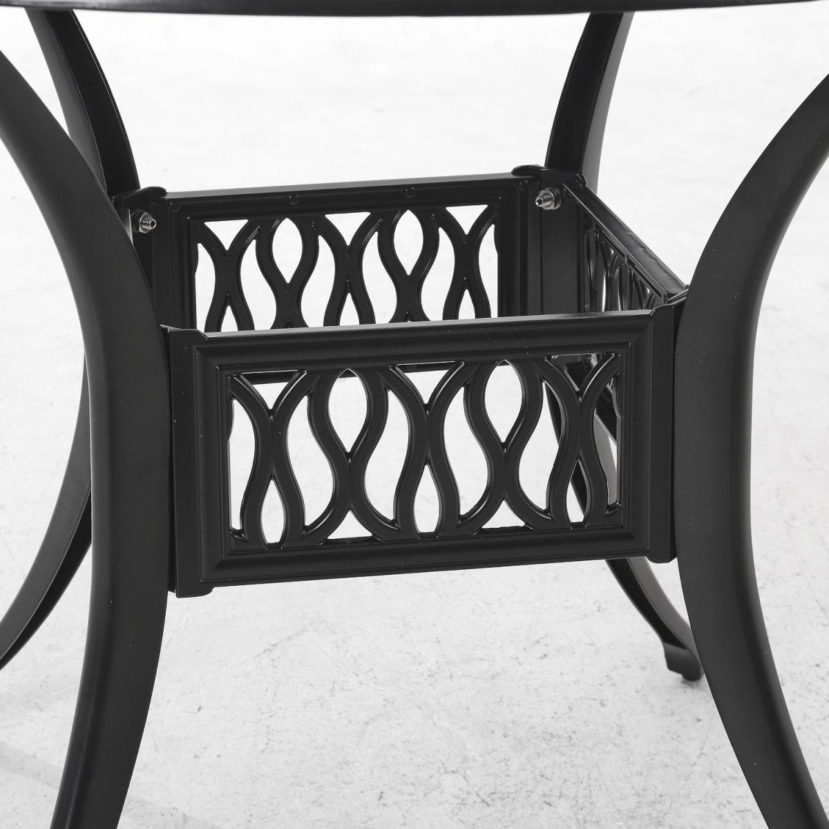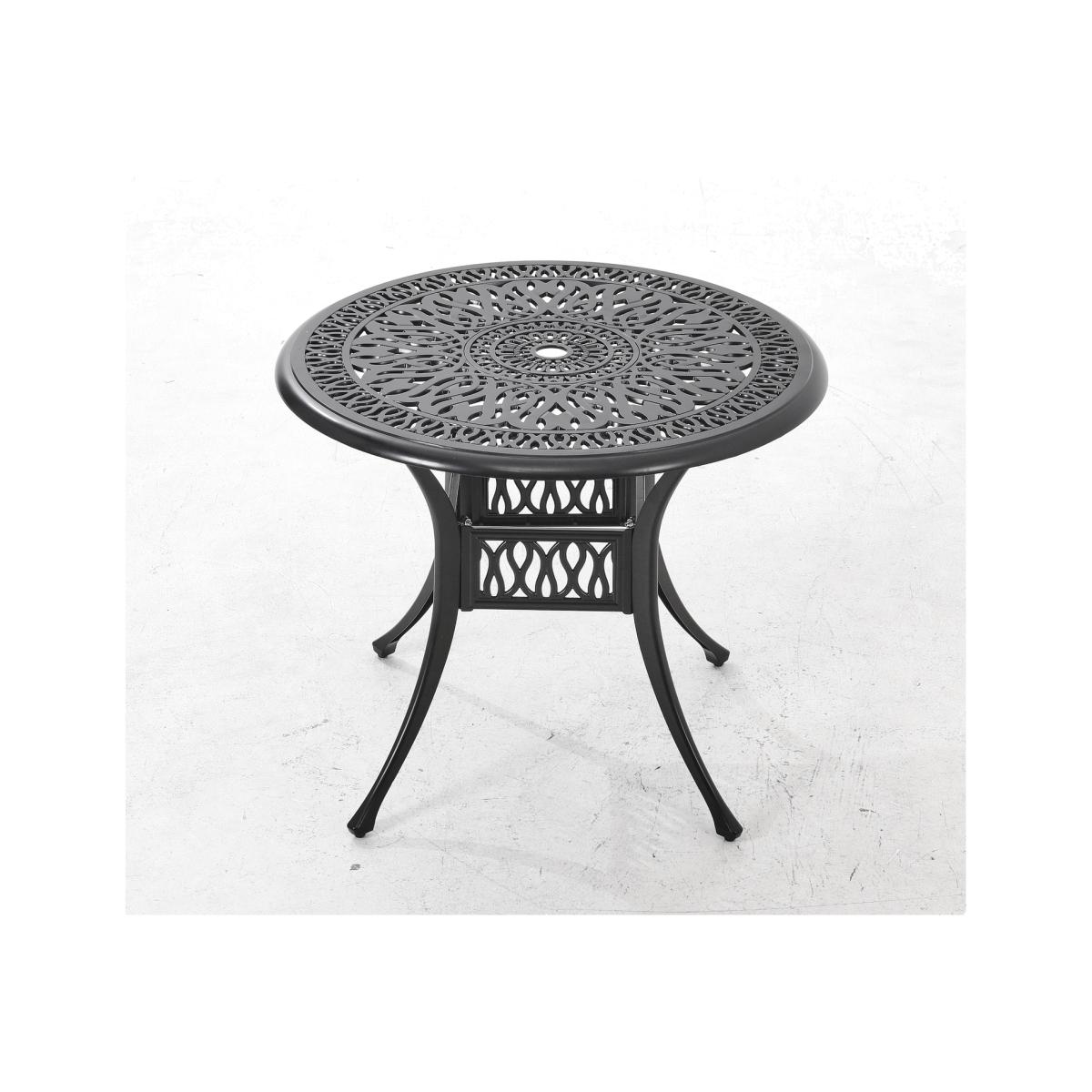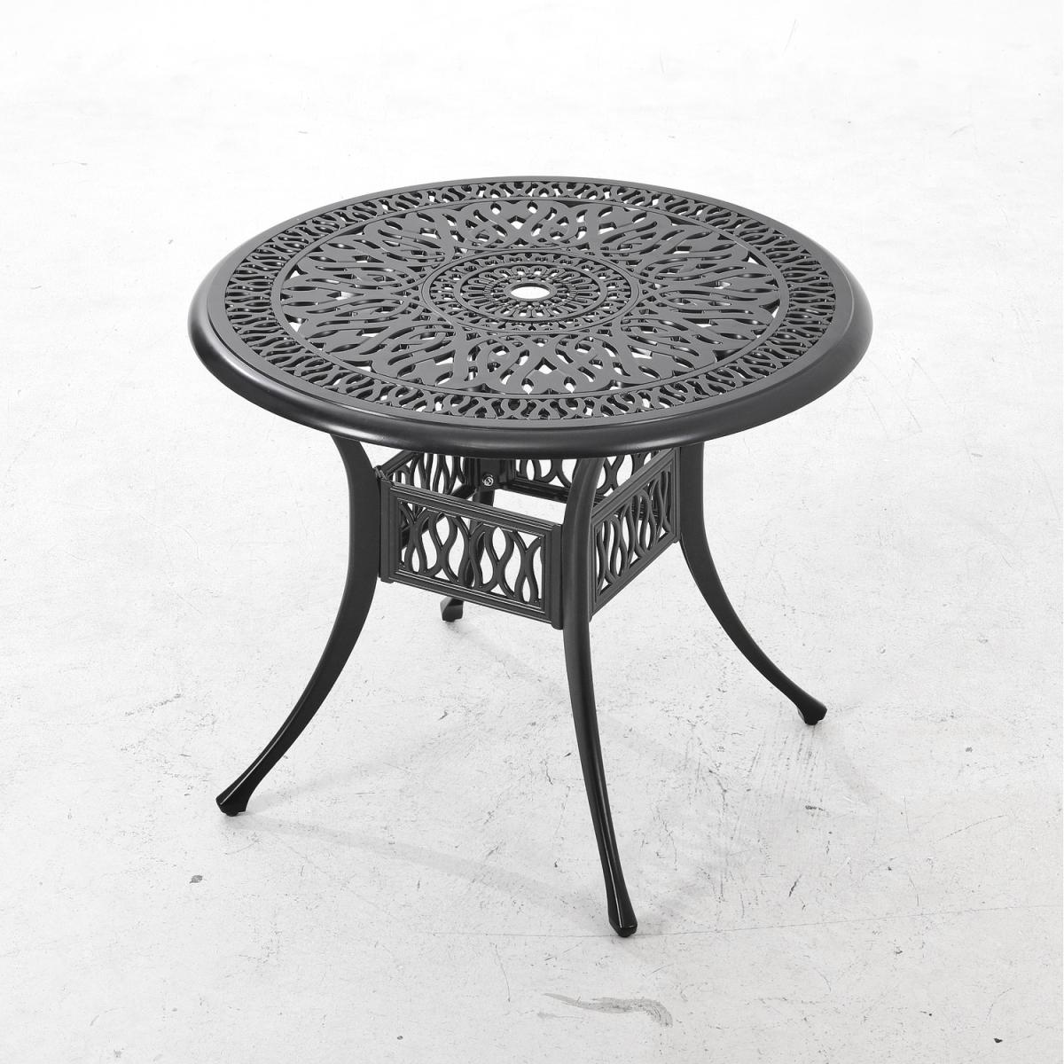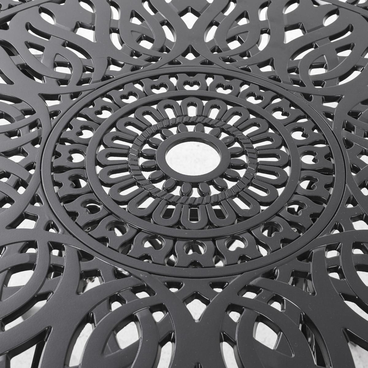 Made of premium cast aluminum, our patio table is sturdy and durable with a long service life. Exquisite craft with the powder-coated finish, resistant to rust, weather and fade, easy to clean with a wet cloth. The hollow-out design makes cleaning much easier since the water can be drained quickly, provides a maintenance free outdoor using experience, hold up in any weather condition. Add footpads at the bottom, the table can maintain perfect stability and prevent scratching the floor. There is an umbrella hole with a diameter of 2" in the middle of the table, which can be used to install a patio umbrella (not included) to protect you from the sun and rain. This patio dining table is an ideal choice for gracing your yard, poolside, balcony, garden and porch.