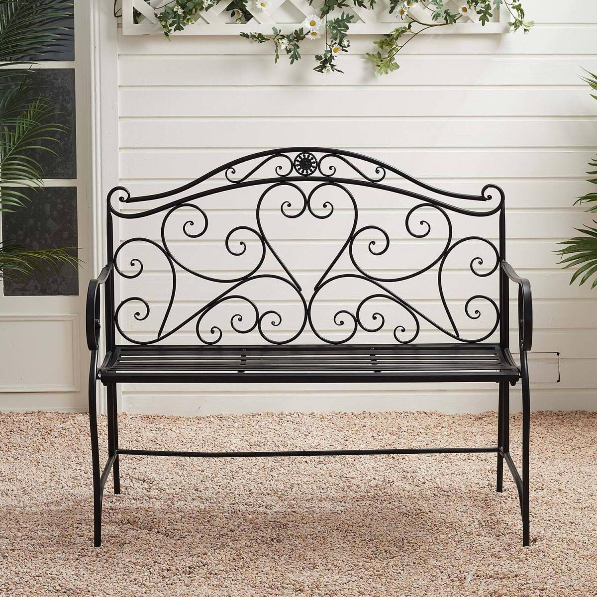 This beautifully designed powder coated bench will add elegance to your front or backyard, which will be a great addition to the garden or make a completion for your path. This bench features powder-coat steel construction to deliver durability and lightweight, and the antique finish adds an attractive look to your patio deck. The seat is large enough for 2-3 people to sit at the same time. Smooth surface with an all-weather powder coat is easy to clean and maintain in daily life. Slatted seat, ergonomic backrest and comfortable armrests add extra comfort.