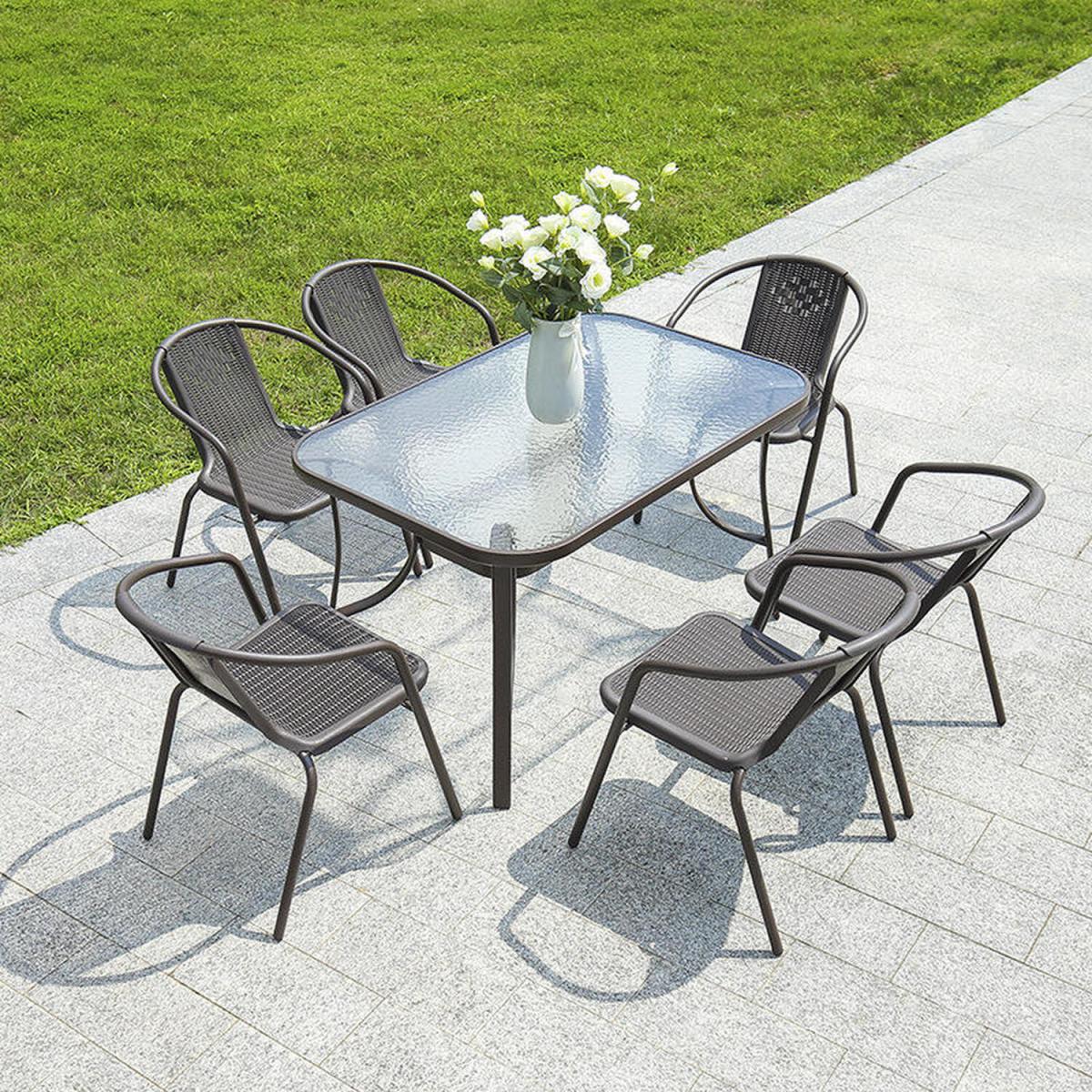 Outdoor Coffee Table and Chairs Bistro Set - Black / 120cm / 6 x Chairs; 1 x Table / 37.7kg