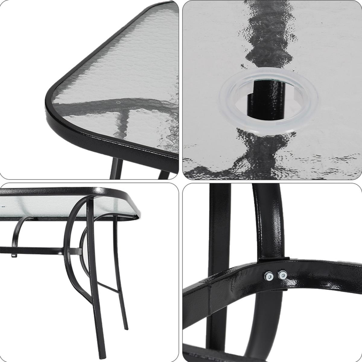 This outdoor bistro set, with its delicate appearance and high quality, can make a great experience for you. Modern and practical patio furniture set increases a fashion style to your garden or porch. There's a 51mm hole in the middle of the table, where you can place a parasol to protect you from the sunlight. In a contemporary style, it's perfect to compliment your garden or balcony.