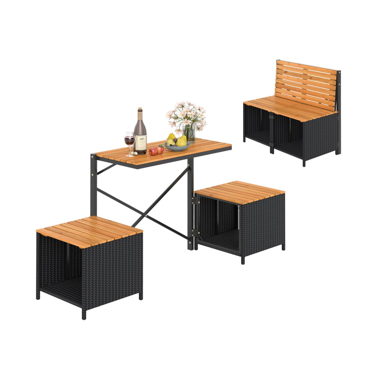 Add a touch of sophistication and charm to your outdoor settings with our 2-in-1 convertible bench! Seamlessly transitioning from a patio table and chairs set to a 2-seater bench with premium hinges and secure fixing buckles, this multifunctional piece offers a versatile solution for different seating needs. Constructed from hand-woven PE rattan and solid acacia wood, the bench transformer is built for durability and brings a touch of elegance to any setting. The strong metal frame, enhanced by a triangular structure and X-shaped bars, ensures reliable support and added stability. Additionally, the handy bottom storage is ideal for holding your outdoor essentials. Ideal for yards, gardens, patios, or porches, the outdoor convertible bench is a stylish and practical addition to your outdoor space.