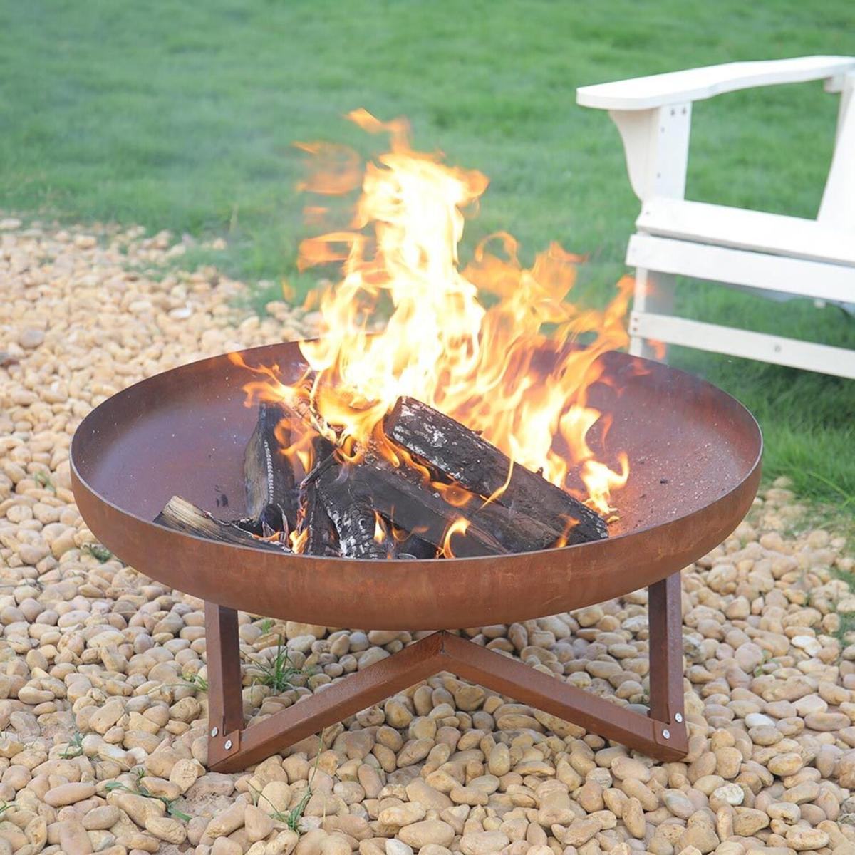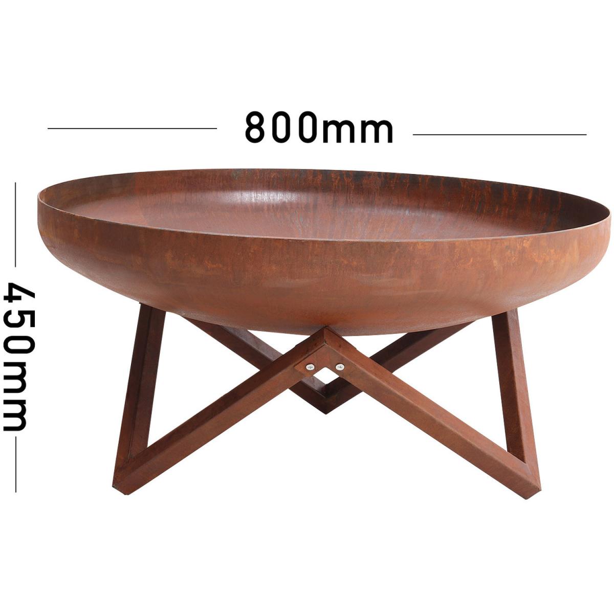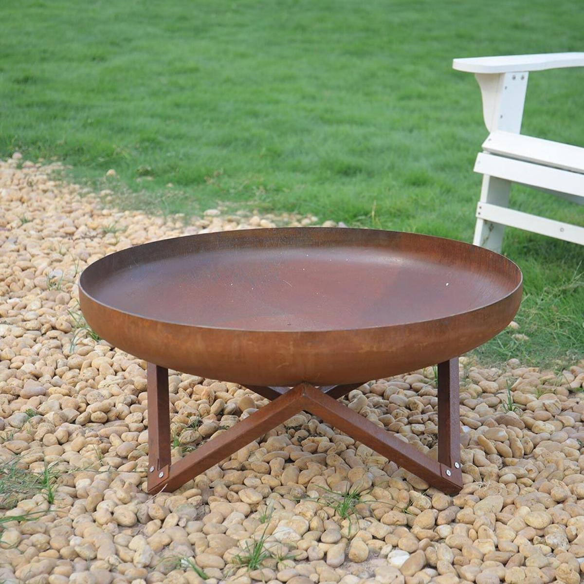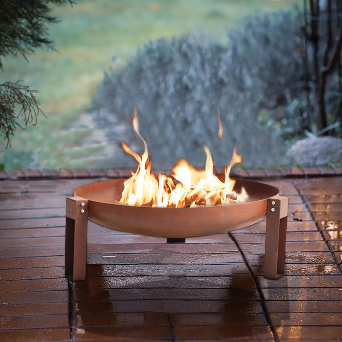 Made from sturdy and heat resistant thick corten steel, it is very practical. With a diameter of 80cm, there is ample space for several logs at the same time. Come with a stand making this a portable pit easy to carry. An open fire provides a lovely visual centrepiece, allowing you to watch the flames flicker and dance in the dark of the night. It can be used as a fire bowl, BBQ Grill or outdoor heater, which is sure to be the perfect heating option for your garden patio, terrace or when your camping.