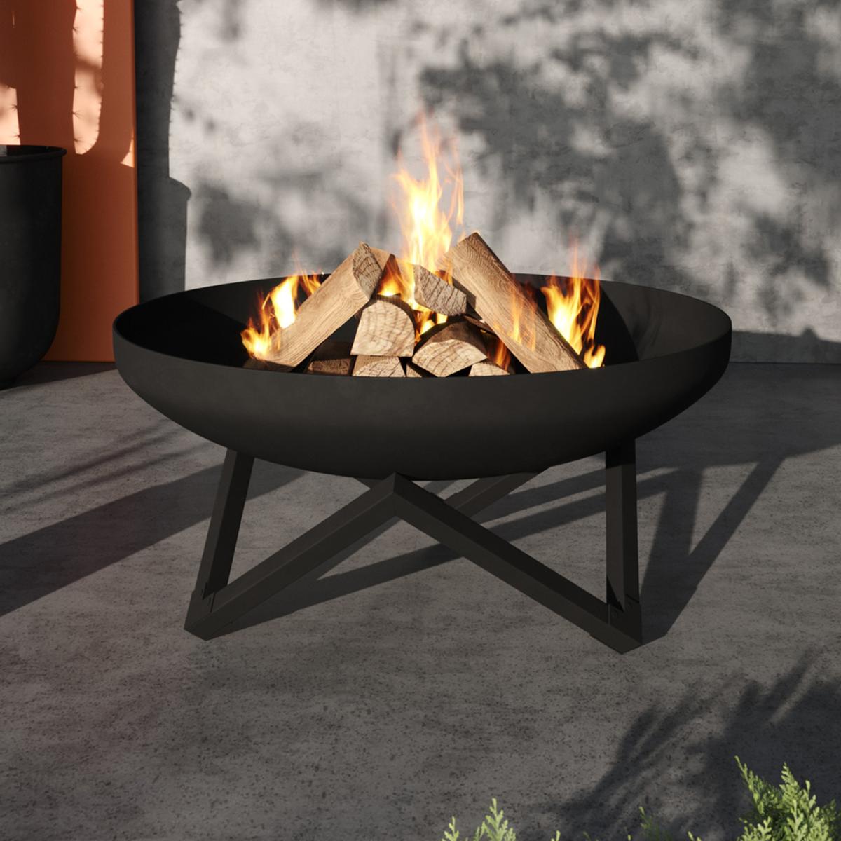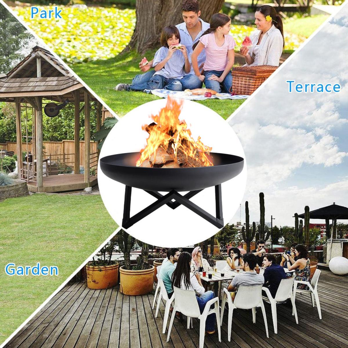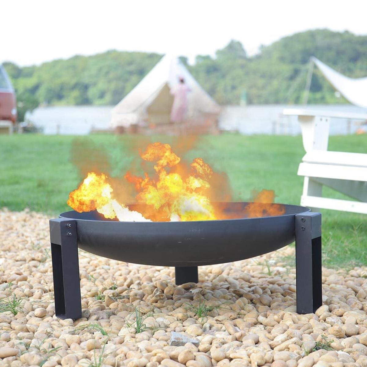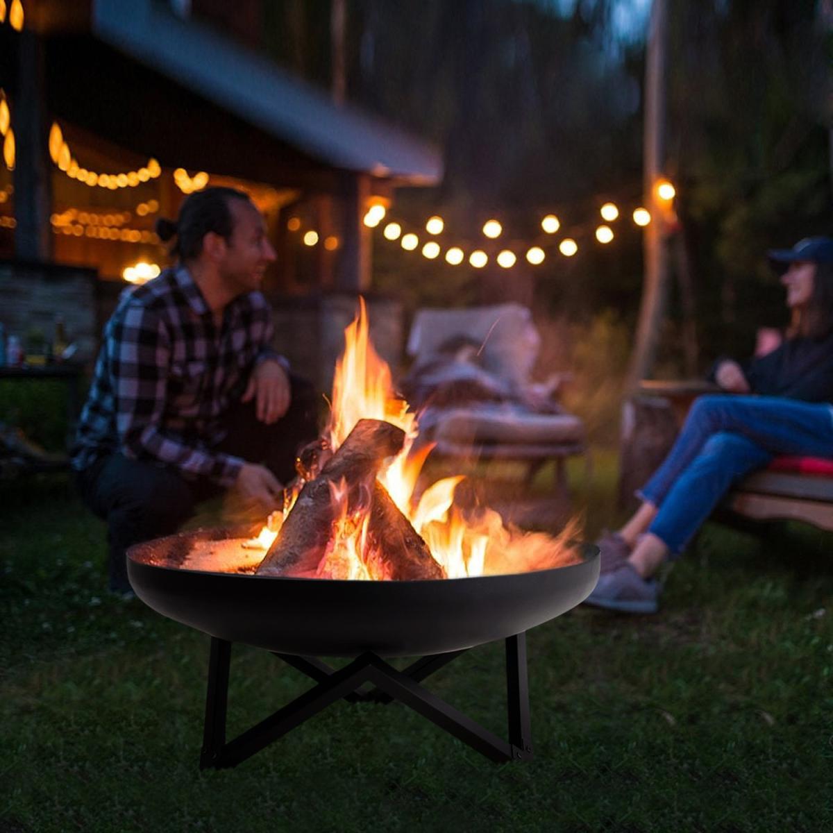 Made from sturdy and heat resistant thick corten steel, it is very practical. With a diameter of 80cm, there is ample space for several logs at the same time. Come with a stand making this a portable pit easy to carry. An open fire provides a lovely visual centrepiece, allowing you to watch the flames flicker and dance in the dark of the night. It can be used as a fire bowl, BBQ Grill or outdoor heater, which is sure to be the perfect heating option for your garden patio, terrace or when your camping.
