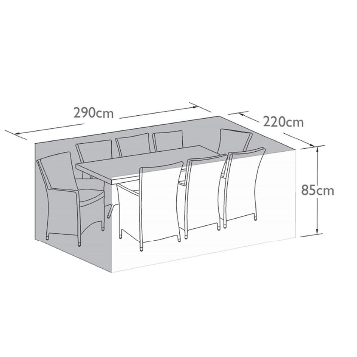 Design. Designed to protect our 8 Seat Rectangular Dining Sets. Our Outdoor Cover for 8 Seat Rectangular Dining Set ismanufactured from a premium breathable outdoor fabric which is UV protective and shower resistant providing superior protection from the elements.