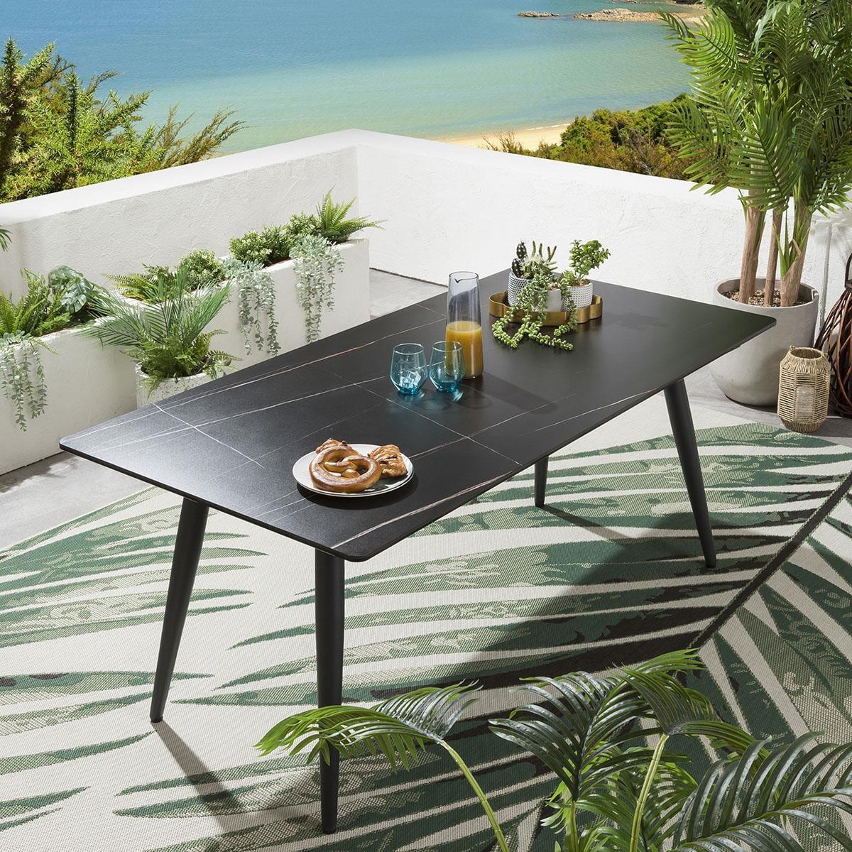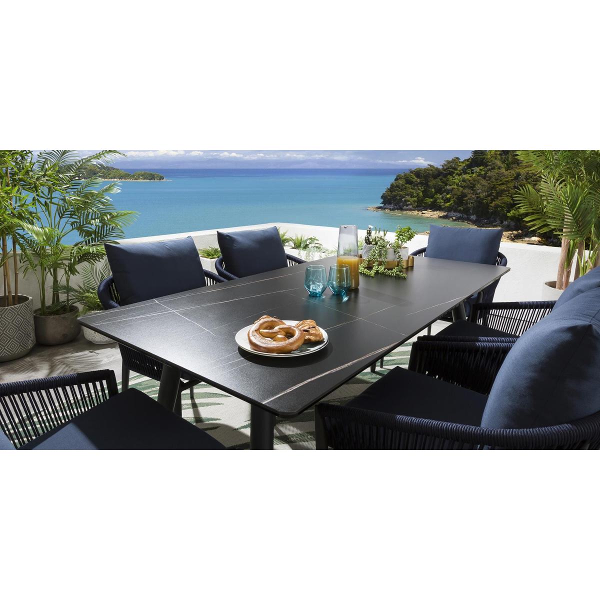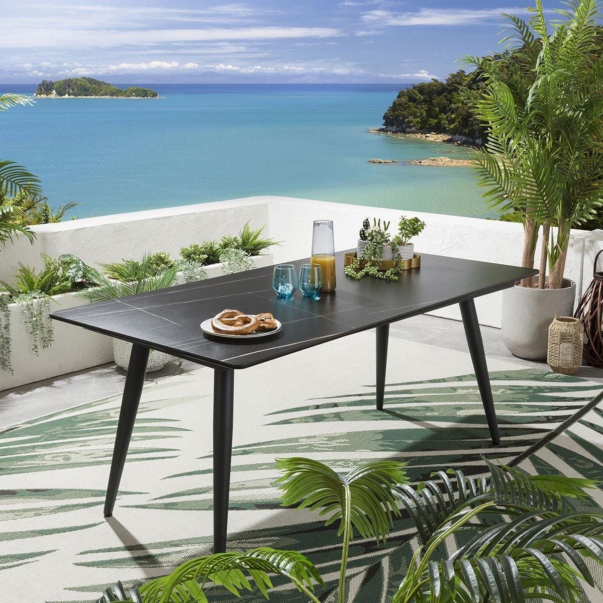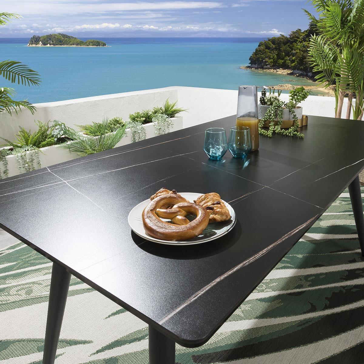 The Quatropi Portals indoor/outdoor rectangular 180cm dining table is a stylish and modern piece of furniture that is perfect for any home. Featuring a grey aluminum frame and a 12mm thick black ceramic top, it is both strong and durable, making it ideal for both indoor and outdoor use. The rectangular shape of the table provides plenty of space for up to 8 people. With its contemporary design, the Quatropi Portals round dining table is sure to make a great addition to any home. It is perfect for entertaining family and friends, or simply enjoying a meal in the comfort of your own home. If you need more information about this product, use the Live Chat service to speak to the team or send us a message. Spread the cost our with interest-free finance options. Minimum spend applies. W180cm D90cm H74cm Ceramic Top All aluminium frame