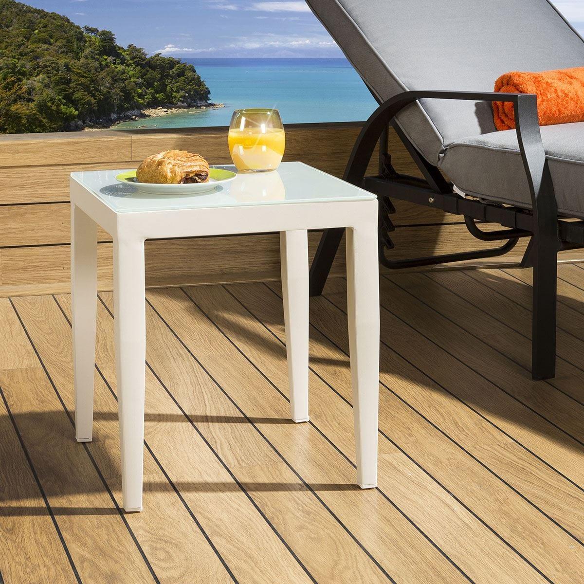 Outdoor End Table Garden Side Table Aluminium White Square Quatropi