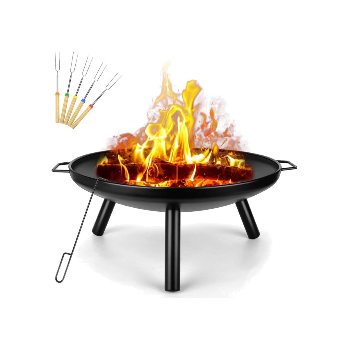The Sunlifer round shape outdoor fire pits is made from heavy duty gauge steel with high temp paint which can work longtime outside and keep rust resistant. There are three durable legs to maintain the best stability, so that the firepits for outside is not easy to shake during use. The garden fire pits no need tools and screws to install, simply attach the 3 removable legs less than 1 minute. The camping fire pit is very lightweight and convenient. With two side handles, you can take it anywhere in the backyard or while camping