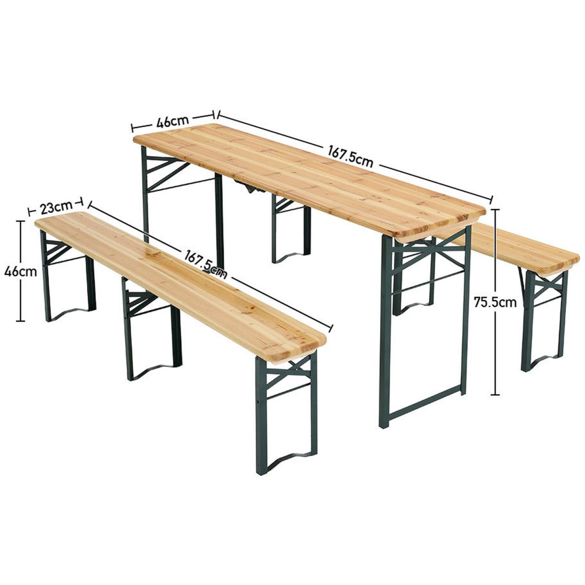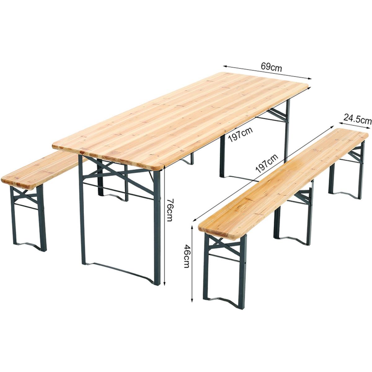 Undoubtedly, this table bench is not only a simple industrial-inspired furniture, but an aesthetic decoration. The rustic wood grain and metal structure complement each other perfectly by bringing out the uniqueness in each material. The result is that this dining table chair set is an excellent addition which generates an industrial vibe and creates an intoxicating scene. The matching benches with backrest have a generous seating area, which makes them a great choice when you have plenty of guests around. The tabletop and chairs help ensure a smooth surface for easy cleaning, so you can keep this set looking its best for an extended period. Furthermore, it occupies a little space without forfeiting contemporary convenience because of folding feature. Include screw fixing, flat package,easy to install. Perfect for outdoor garden, paito, pub bar, restaurants, cafe or camping, picnics, barbecues etc.