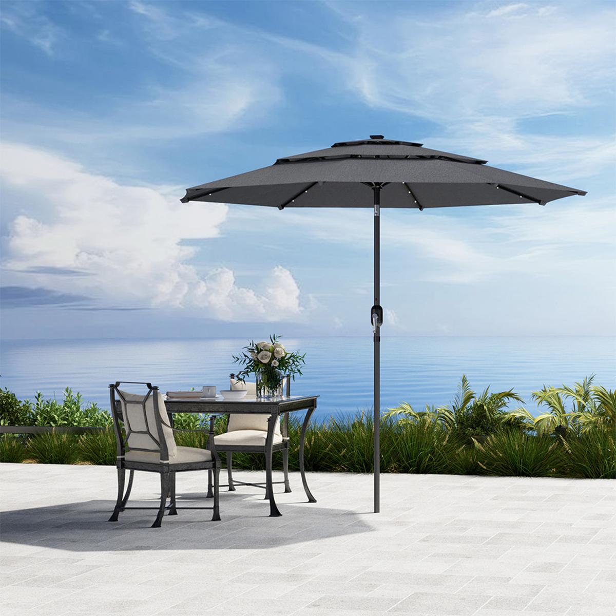 Outdoor Garden 3-Tier Parasol with Solar Lights - Dark Grey