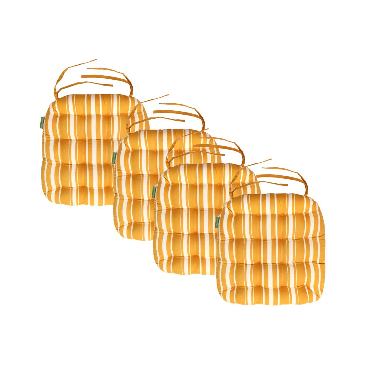 The slip-free Outdoor Tufted Chair Seat Pad with Ties is made for your comfort and enjoyment. It has high-quality hollowfibre padding that gives you long-lasting support and coziness. Lightweight and easy to store, perfect for frequent furniture movement or limited storage space. Made from durable and comfortable premium polyester fabric in plain colors and cotton fabric in prints, this seat pad is water-resistant and fire-retardant. It is filled with high-quality Hollowfibre stuffing for comfortable seating. The outdoor Tufted Chair Seat Pad with Ties is resistant to wear and tear and can withstand any weather.