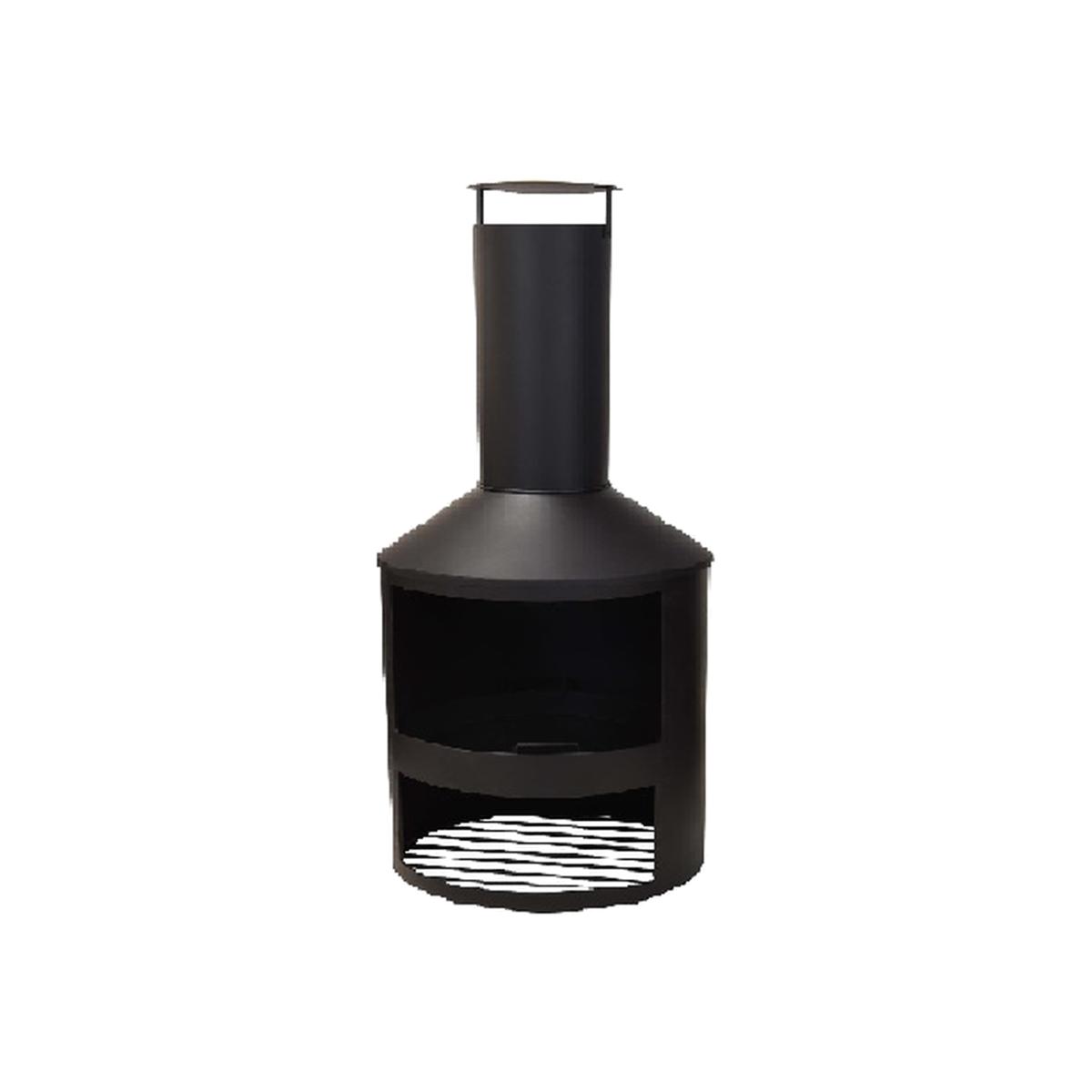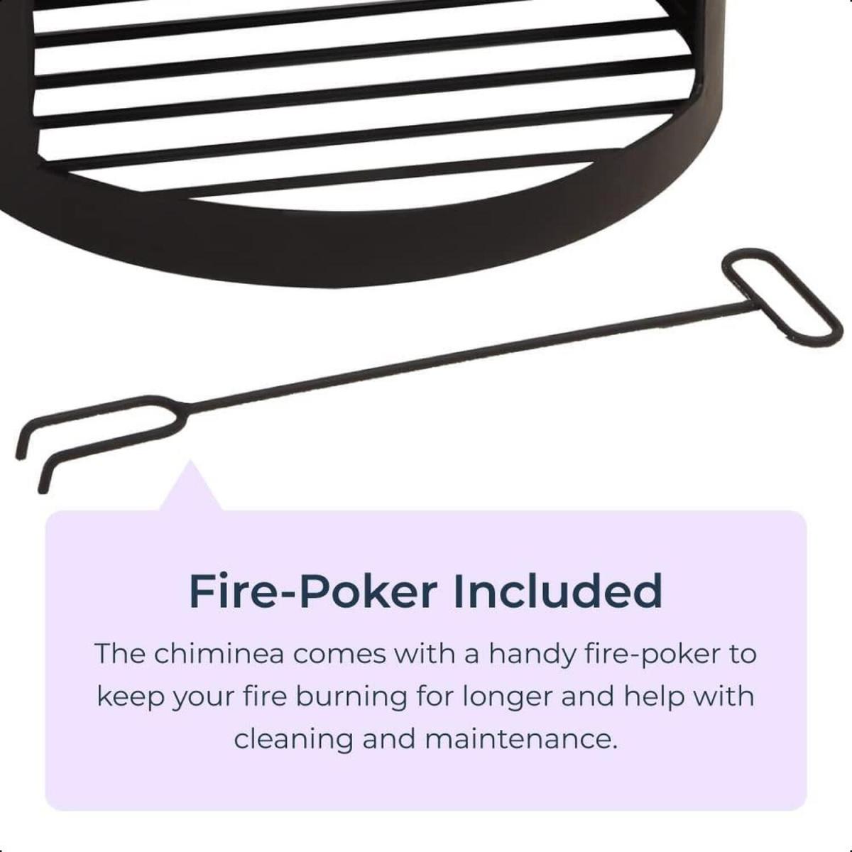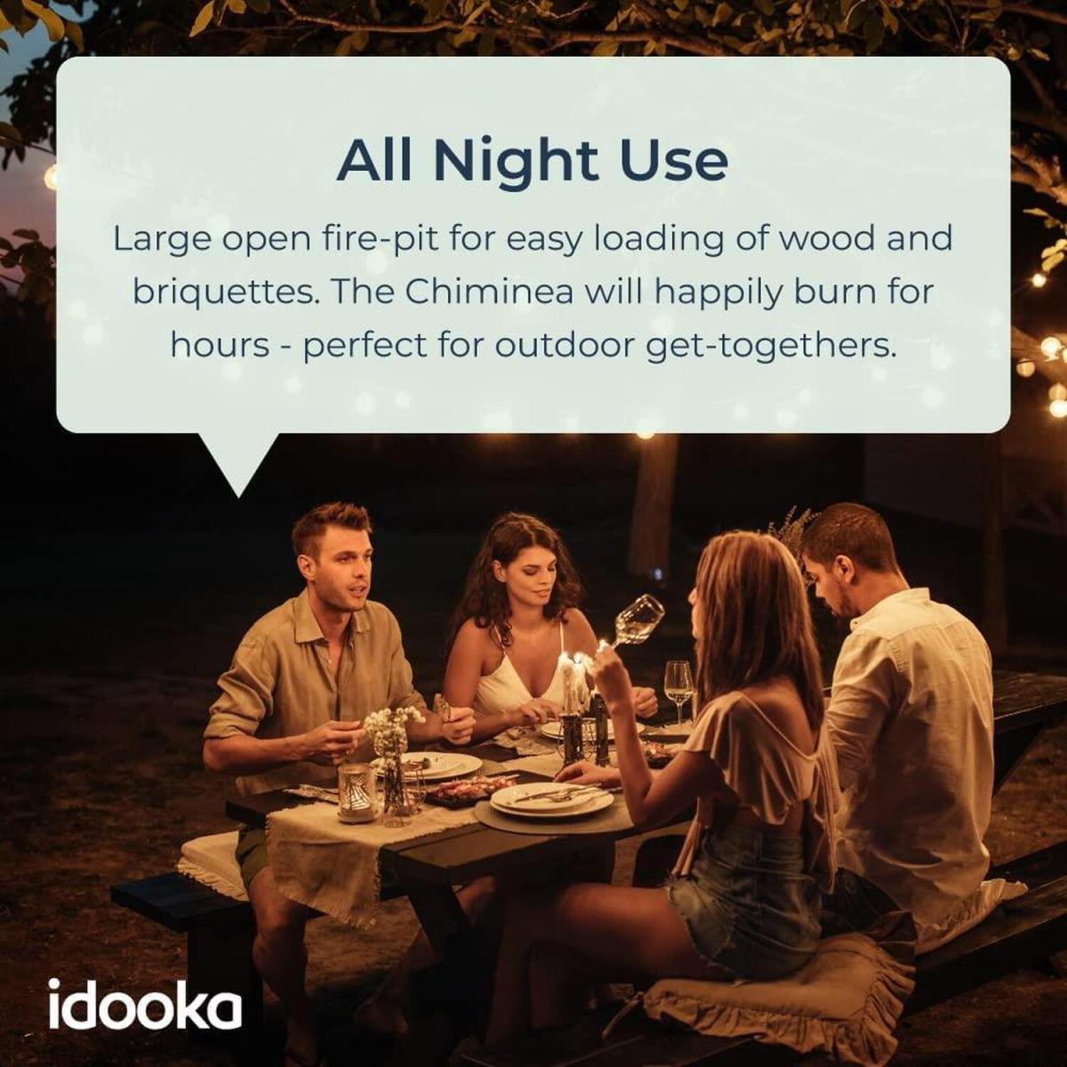 This tall chiminea fireplace is perfect for your outdoor space. It's made of strong 0.8mm metal with a 600 degrees celsius fire resistance rating, allowing you to load it with wood and let it burn for hours. The high-temperature paint is weather-resistant and waterproof, so it can take care of itself. The open front gives you a full view of the flames, and there's a shelf underneath to keep wood dry. The included chimney disperses smoke evenly, making it less dense and less likely to bother you. It's 135cm high and 44.5cm wide, making it great for gatherings with friends and family all year round.