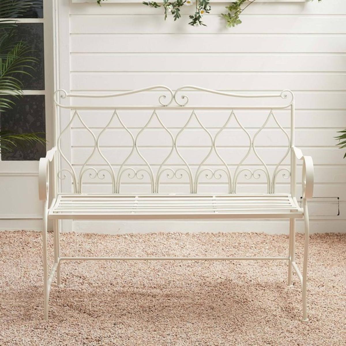 Outdoor Garden Park Porch Cast Iron Bench 2 Seater - White