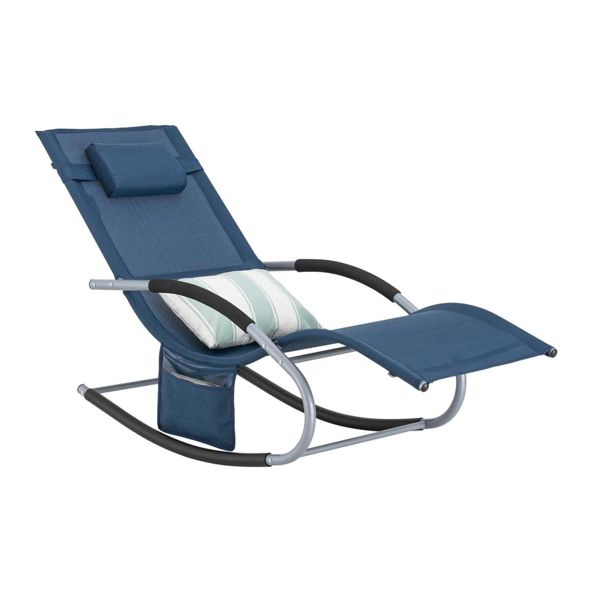 Modern design comfortable and breathable rocking chair is perfect for indoor and outdoor use, providing the ultimate feeling of relaxation for you. It features a headrest, a side bag, armrest and footrest. A special ergonomic wave shape will relax your body completely. Made of high-quality textilene fabric and powder-coated iron frame, lightweight but sturdy and durable enough to ensure a long service life. Item comes in a flat pack and requires self-assembly, detailed instructions supplied. So. Buy Outdoor Garden Rocking Sun Lounger Recliner with Headrest - Dark Blue