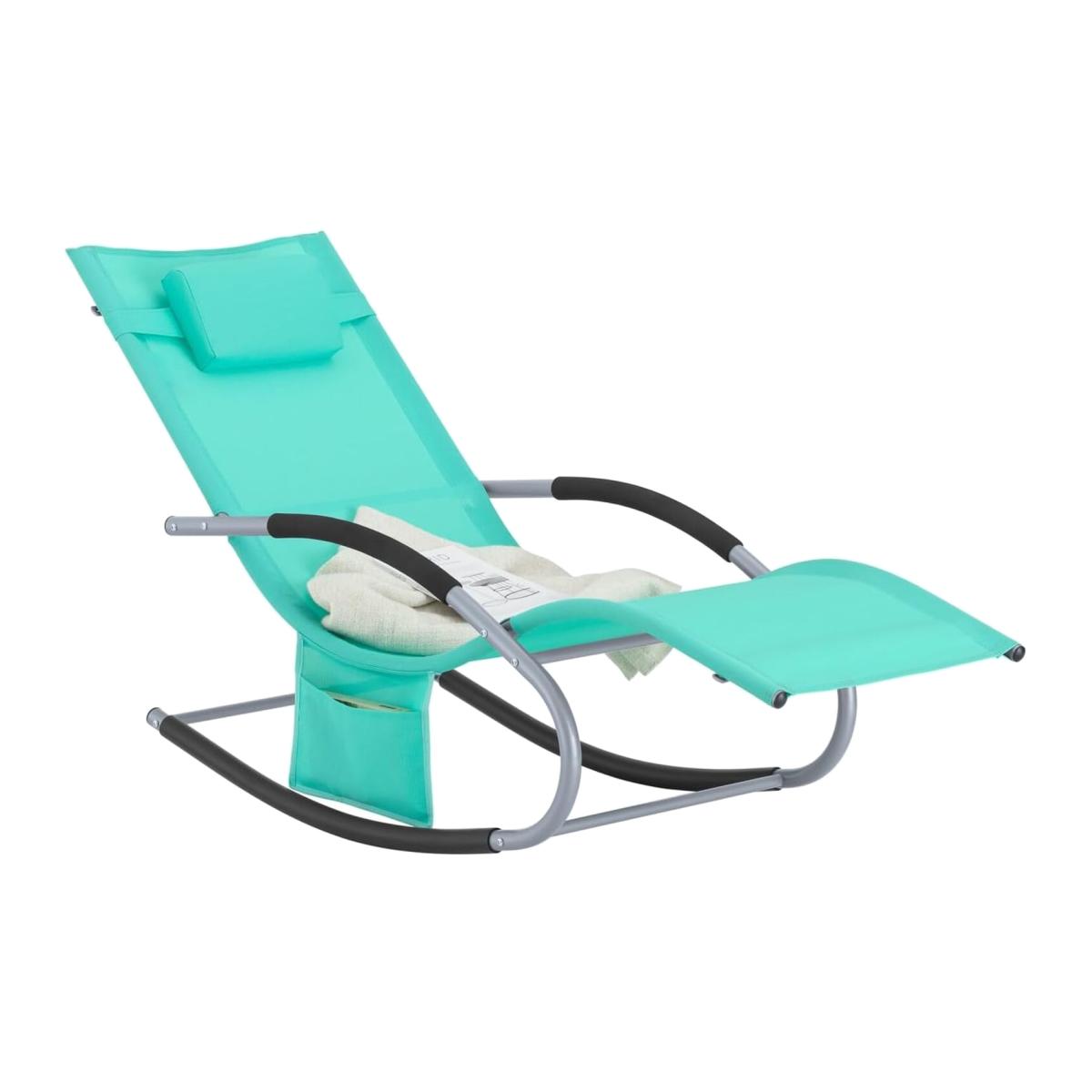 Modern design comfortable and breathable rocking chair is perfect for indoor and outdoor use, providing the ultimate feeling of relaxation for you. It features a headrest, a side bag, armrest and footrest. A special ergonomic wave shape will relax your body completely. Made of high-quality textilene fabric and powder-coated iron frame, lightweight but sturdy and durable enough to ensure a long service life. Item comes in a flat pack and requires self-assembly, detailed instructions supplied. So. Buy Outdoor Garden Rocking Sun Lounger Recliner with Headrest - Turquoise