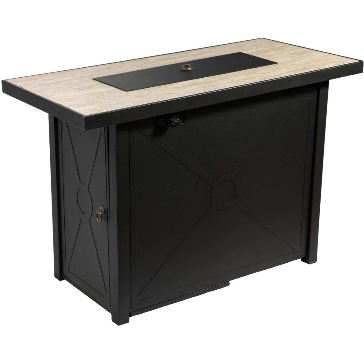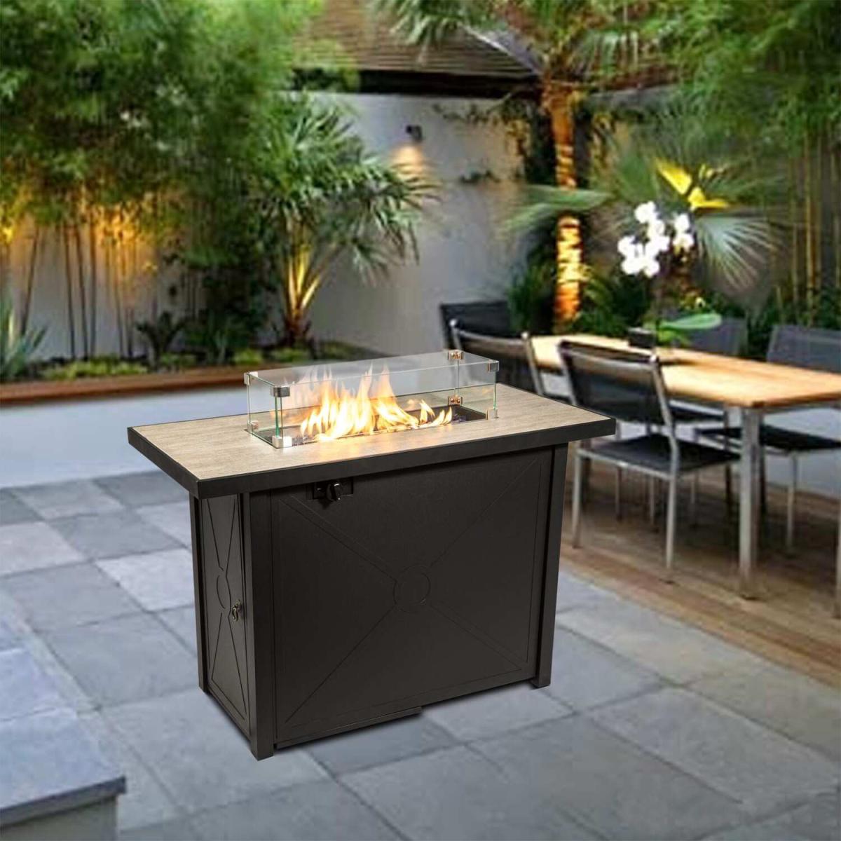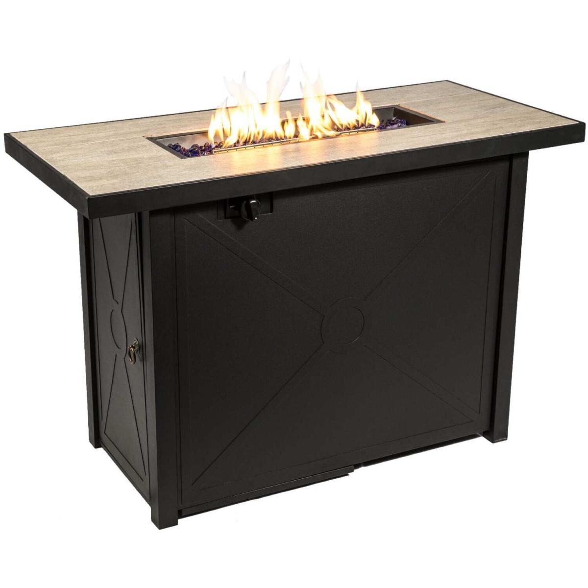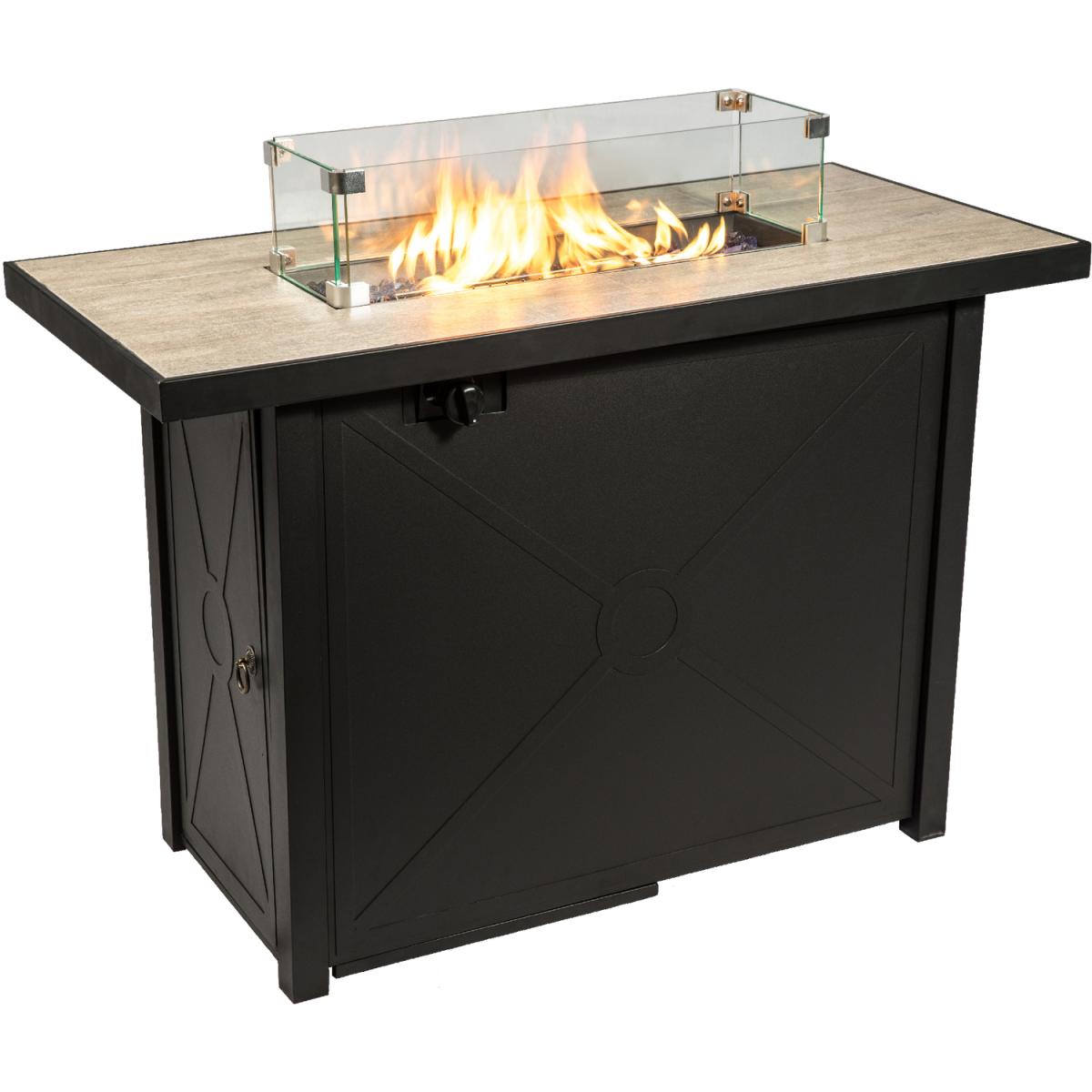 The Teamson rectangle gas firepit is a classic versatile gas heater and is a wonderful addition to any patio garden area and is sure to provide you and all of your guests with warmth in an outdoors space. This durable, lightweight metal outdoor gas firepit is easy to use with any propane gas bottle source. You don't have to worry about building a fire at an instant once its hooked up to the gas bottle. This outdoor gas burning fire pit comes with lava rocks and easy ignition for quickness. Adjustable flames are the perfect addition to light up the garden. This tall, metal firepit is beautifully made and is the perfect companion to a garden sofa set which will add to the intimate feeling for a family night in or friends are gathered.
