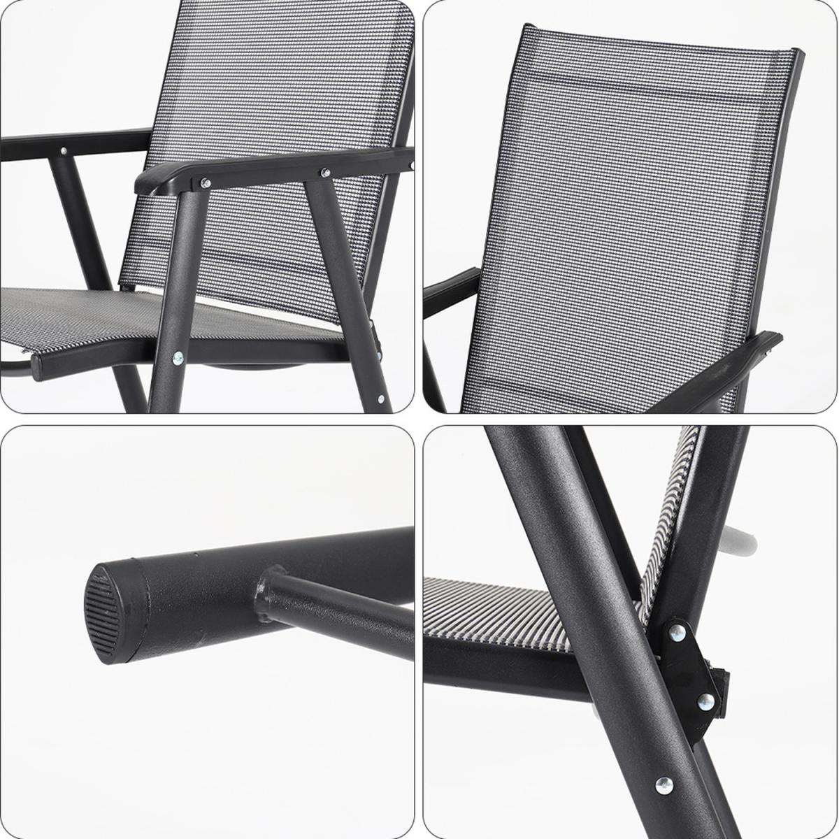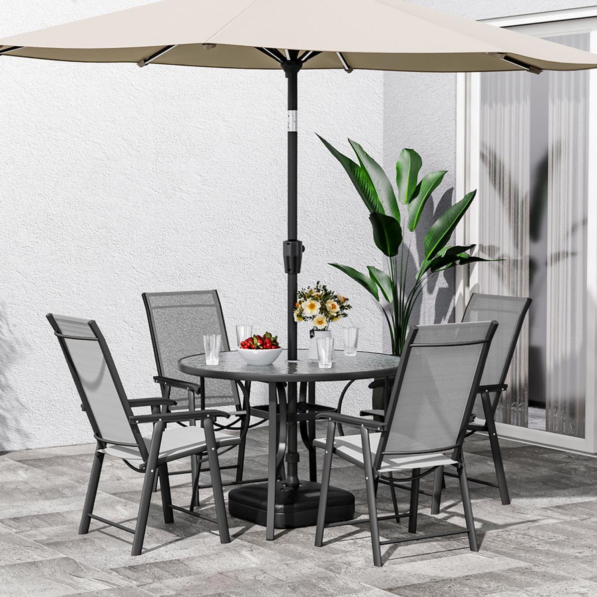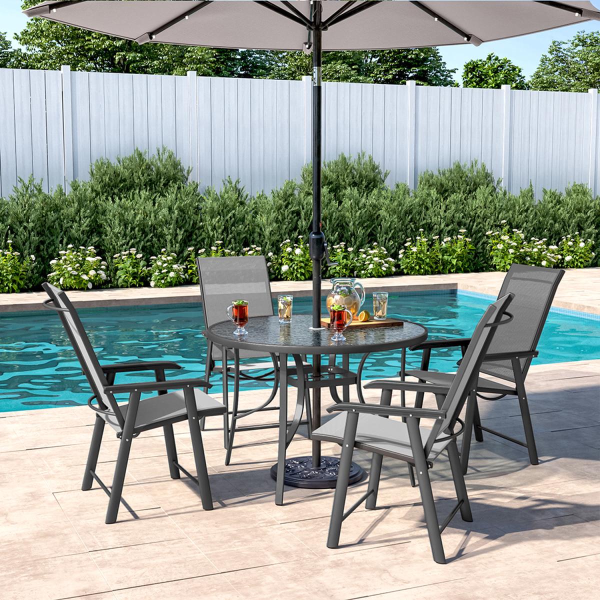 Outdoor Glass Table Bistro Set - Black / Round / 4 x Folding Chairs; 1 x Table