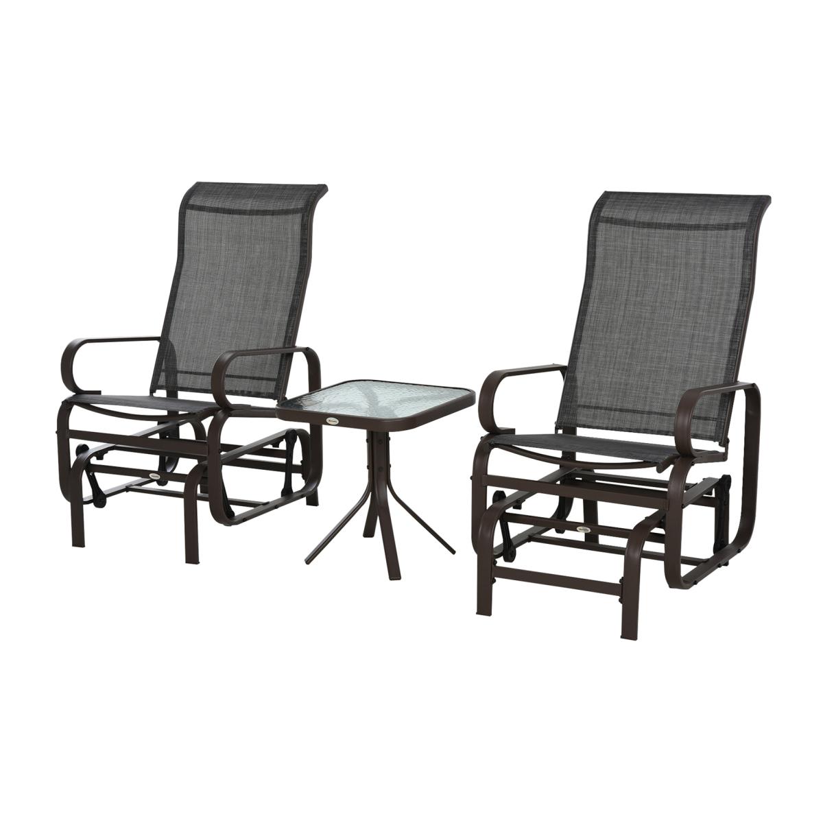 This three-piece swing chair and table set from Outsunny is perfect for your outdoors, garden, patio and beyond. A steel frame ensures strength and durability, with the chairs crafted into a unique and relaxing rocking design. Each chair features breathable sling fabric for comfort, with armrests and a high back for support. It is completed with a matching square table, with a tempered glass top for a convenient resting place.