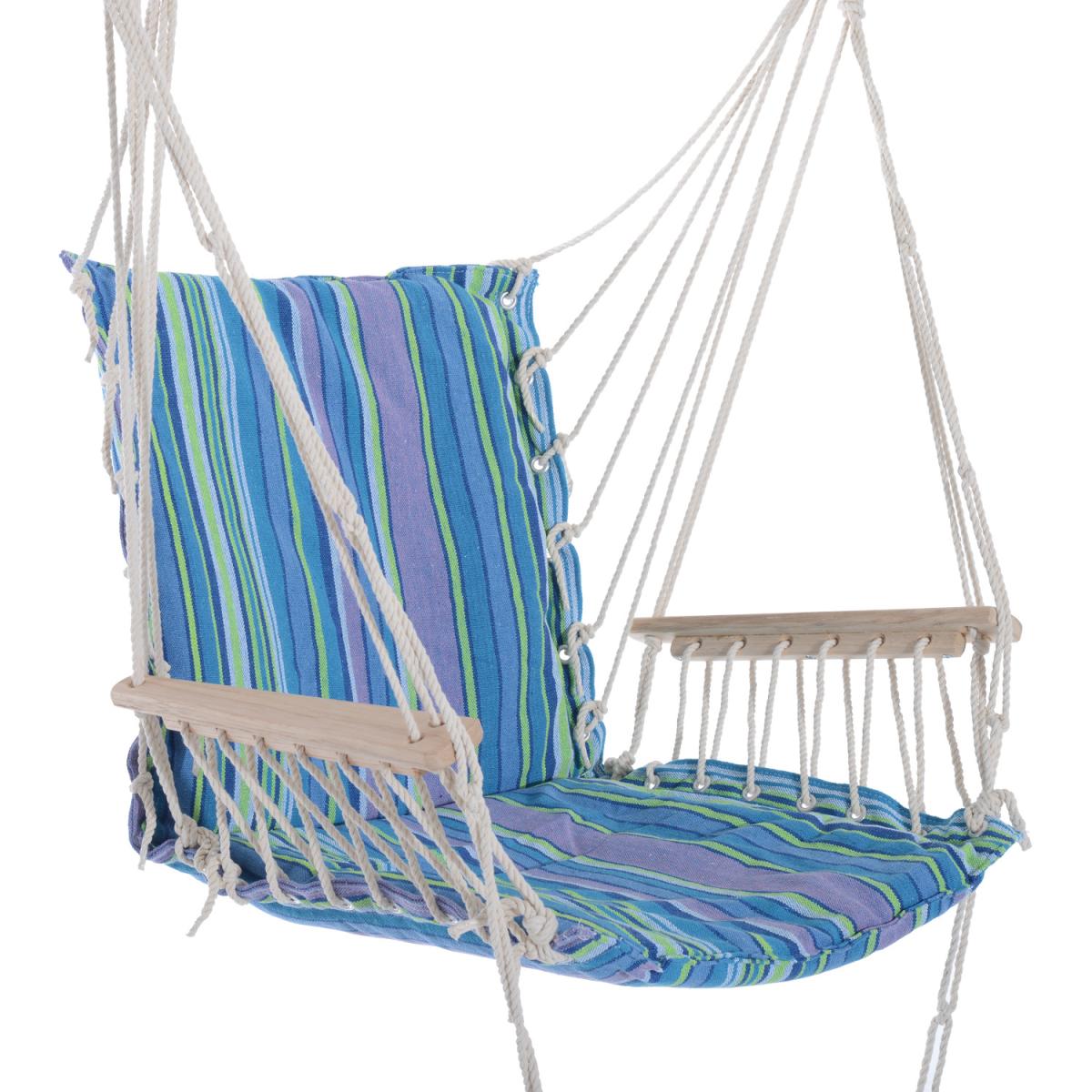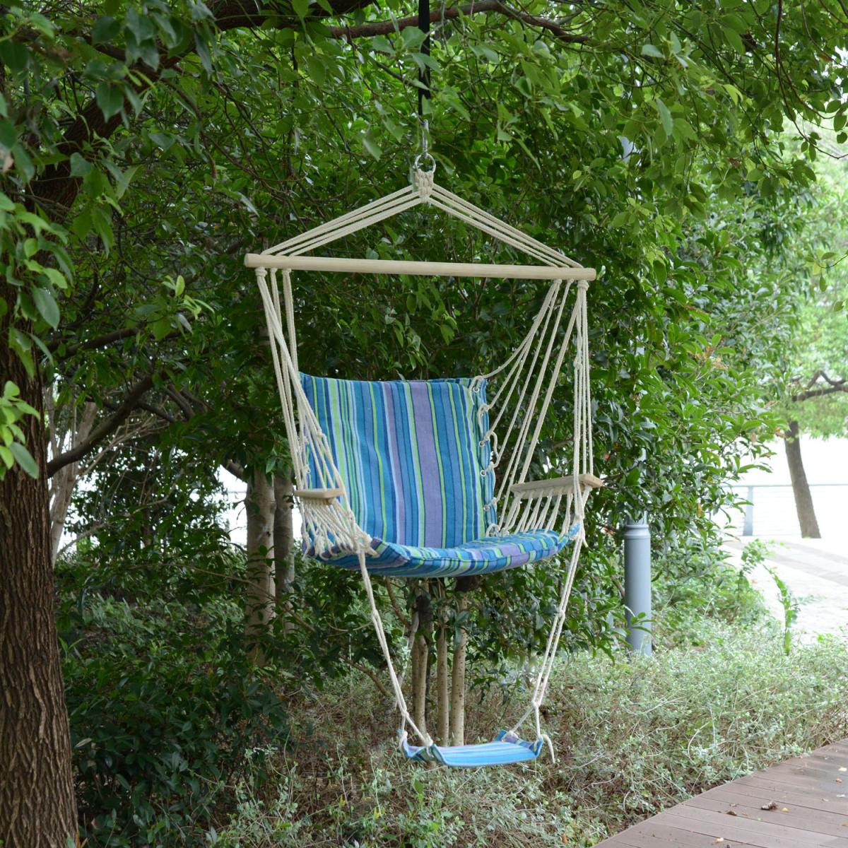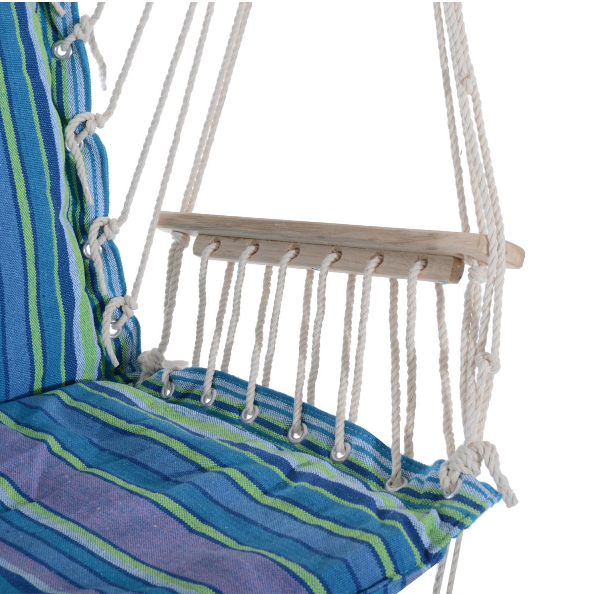 Add a comfortable oasis to your own patio, porch, backyard or indoor space, or an outdoor vacation with this Outsunny's hammock swing chair! It features a cushioned seat, back support as well as footrest which add the ultimate comfort. The solid hardwood bar and the durable cotton rope will help you hang the swing in superior strength and stability. Stylish and practical, it is a great companion in your leisure time!