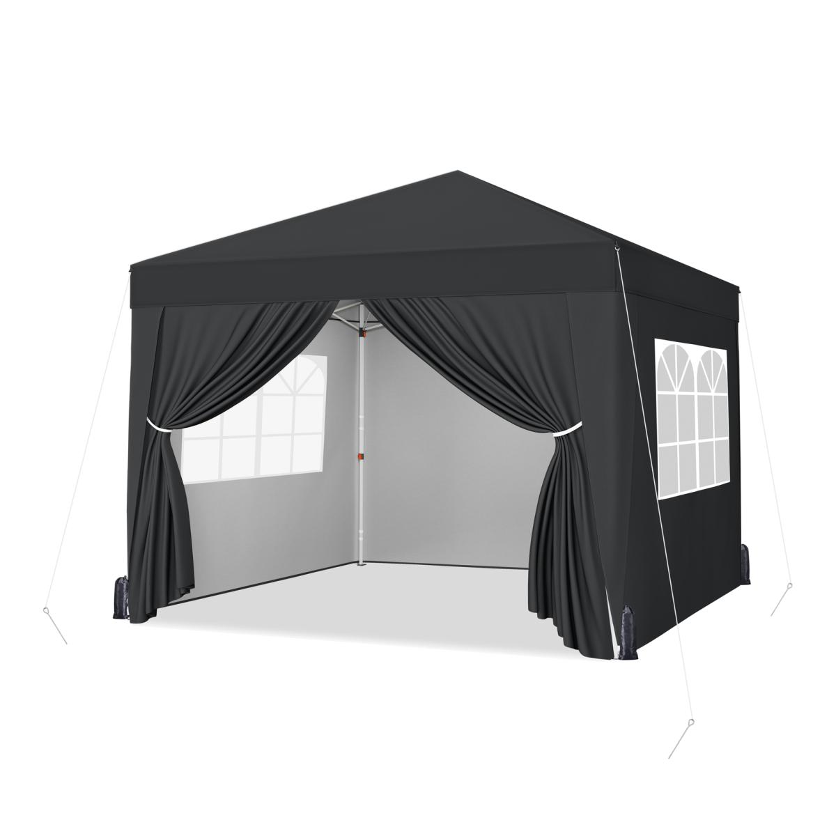 Crafted with hard-wearing polyester canopy fabric featuring a UPF 50+ UV protective coating, this canopy is your go-to solution for creating a cozy and shaded haven. The powder-coated steel frame and truss ensure durability and a touch of elegance. For improved protection, this canopy features three detachable sidewalls and a mid-zip sidewall, providing enhanced protection from the elements while maintaining a bright and cheerful atmosphere. The two sidewalls with transparent windows add a delightful touch, allowing natural light to illuminate your space. This canopy set includes four guy lines, eight metal ground anchors, and four sandbags for convenience and safety.