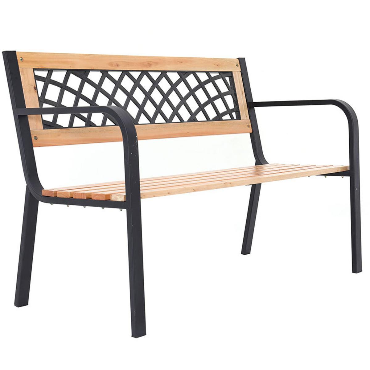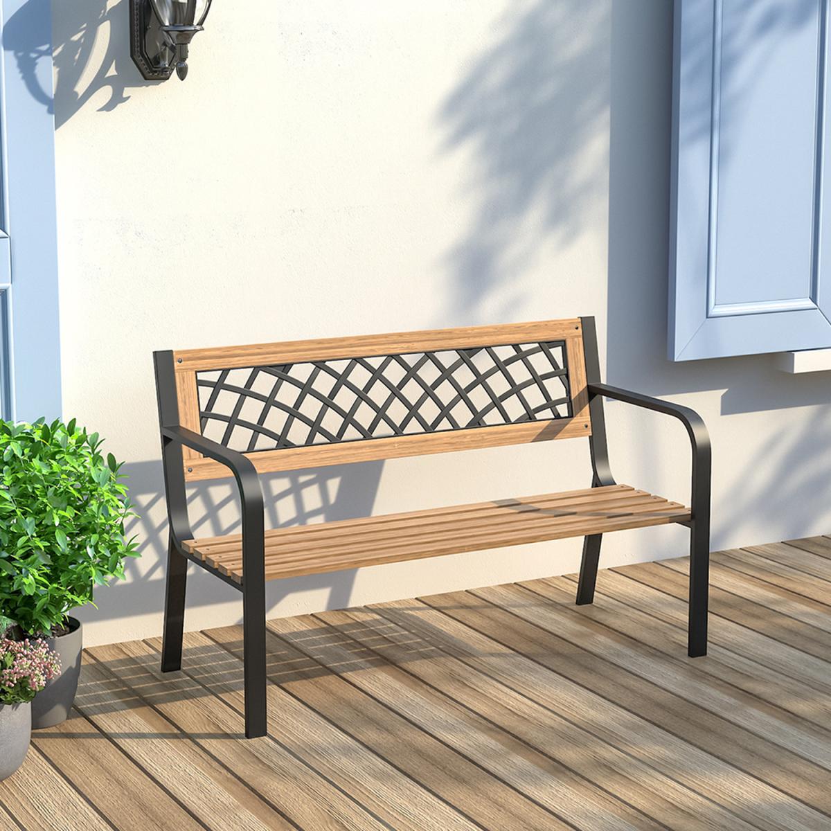 No matter where you place it in the outdoor living area, these garden benches will add a touch of style to any outside space. It features a well-painted cast-iron structure, solid wood seats and backrest frame, and a plastic backrest pattern. The smooth and rounded edges have been carefully designed to ensure seating safety. The comfortable backrest and the curved armrests add an extra sense of fashion and comfort. Put this elegant bench on your backyard, terrace, or even under a beautiful tree, and you will have an ideal place to relax.