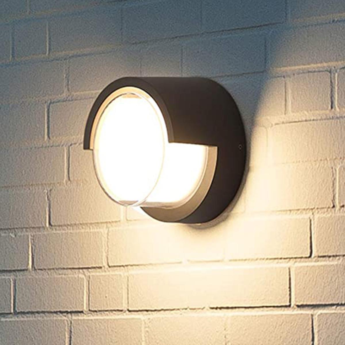 Outdoor LED Round Wall Light Warm White Bulkhead Lamp Balcony Decor - Black