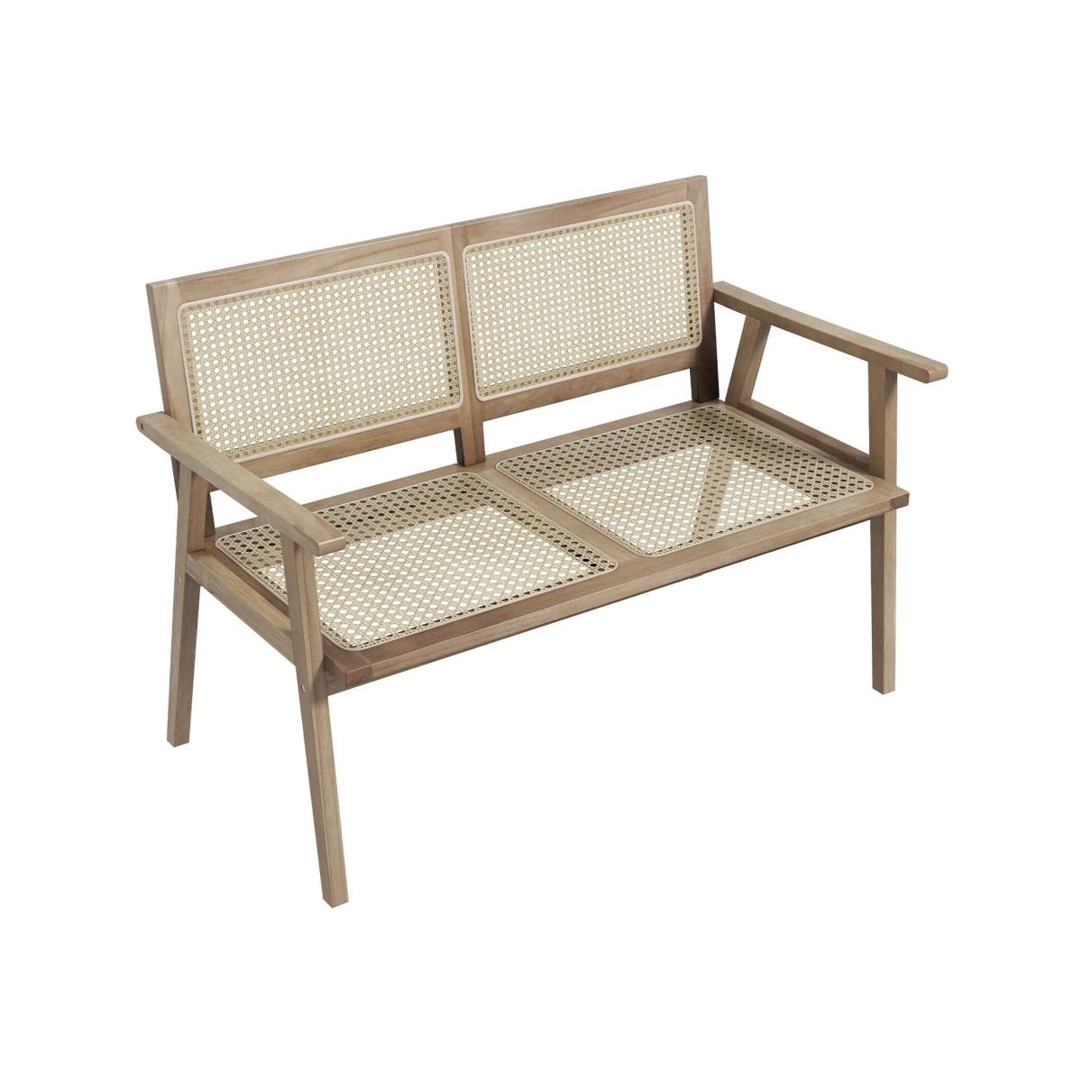 Discover a touch of outdoor splendour with our elegantly designed teak and rattan patio bench, perfect for seating 2! With a sturdy teak wood construction that comfortably holds up to 200kg, this outdoor garden bench is not just an attractive centrepiece but also a testament to solid craftsmanship. Enjoy cosy conversations and tranquil moments as you relax on the natural woven textures that perfectly complement any outdoor space. Outdoor Loveseat Chair with Armrests - Brown