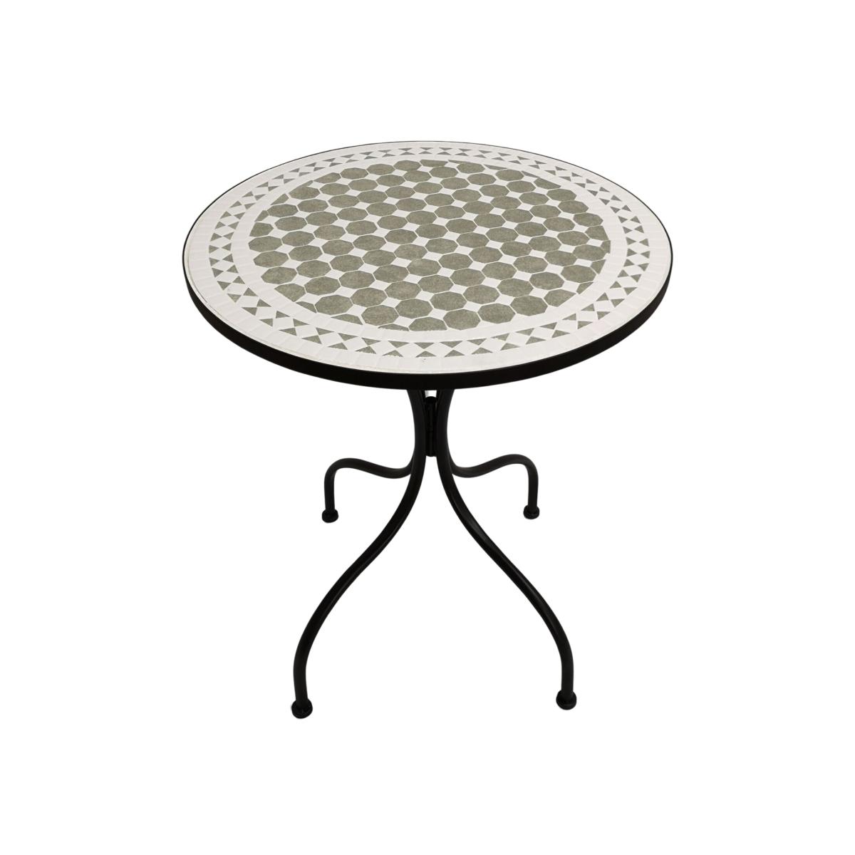 This Mosaic design table is the perfect focal point for your outdoor space this year whether it's for your garden, patio or balcony! This patio table is supported by a sturdy X shaped iron frame providing strong stability with anti skid foot pads that offers more sturdiness and protection from potential scratches along the floor. This table can be used as part of a bistro set or used as a side table, also suitable for indoor use. To assemble the table lay the mosaic face down and unscrew the nut caps. Unfold and attach the frame secure the nut caps and tighten with the included spanner. Dimensions H 70cm D 60cm