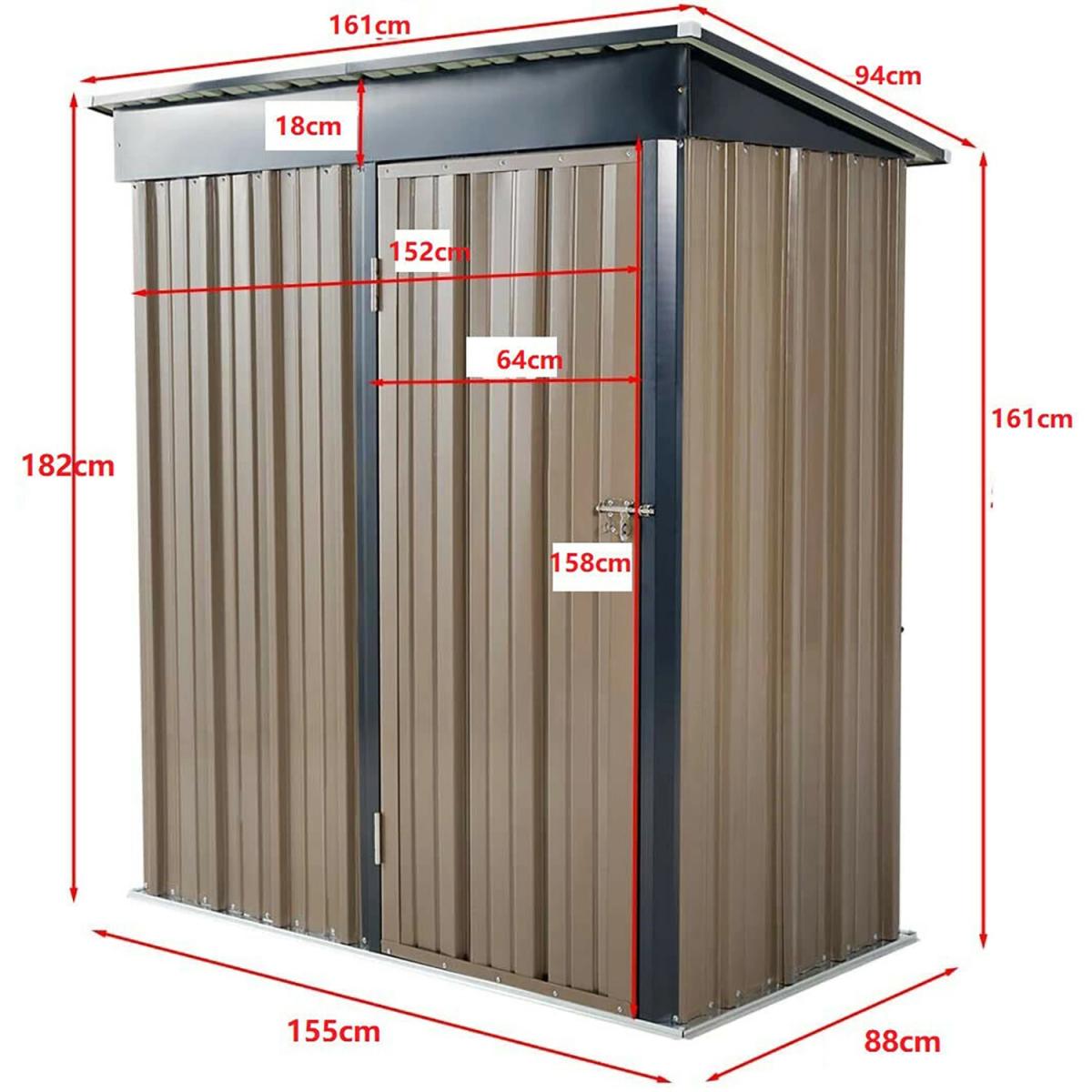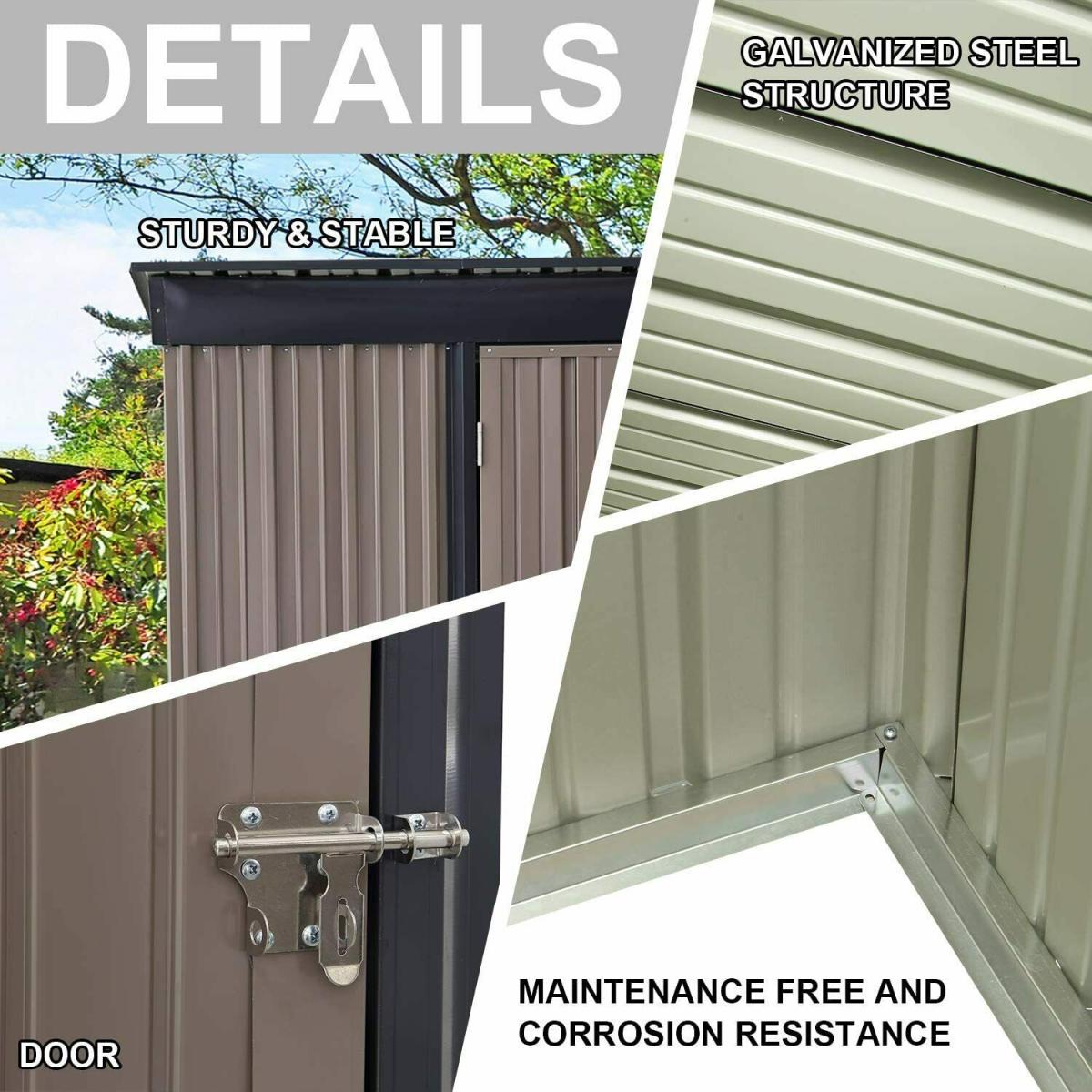 Our 5x 3ft outdoor garden shed, which is made of paint plate and galvanized sheet metal, is corrosion resistant and is expected to be used for a long time. Trouble-free assembly and easy access. It's great for a variety of storage needs like long handle tools, lawn tools, pool accessories or bicycles, garden tools, seasonal decorations, or other spare items. Metal Storage Shed's lockable doors will keep your exterior elements in good condition and safe while keeping your back yard looking clean, neat!