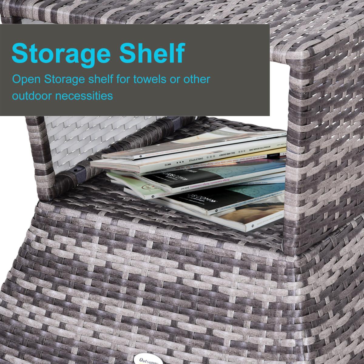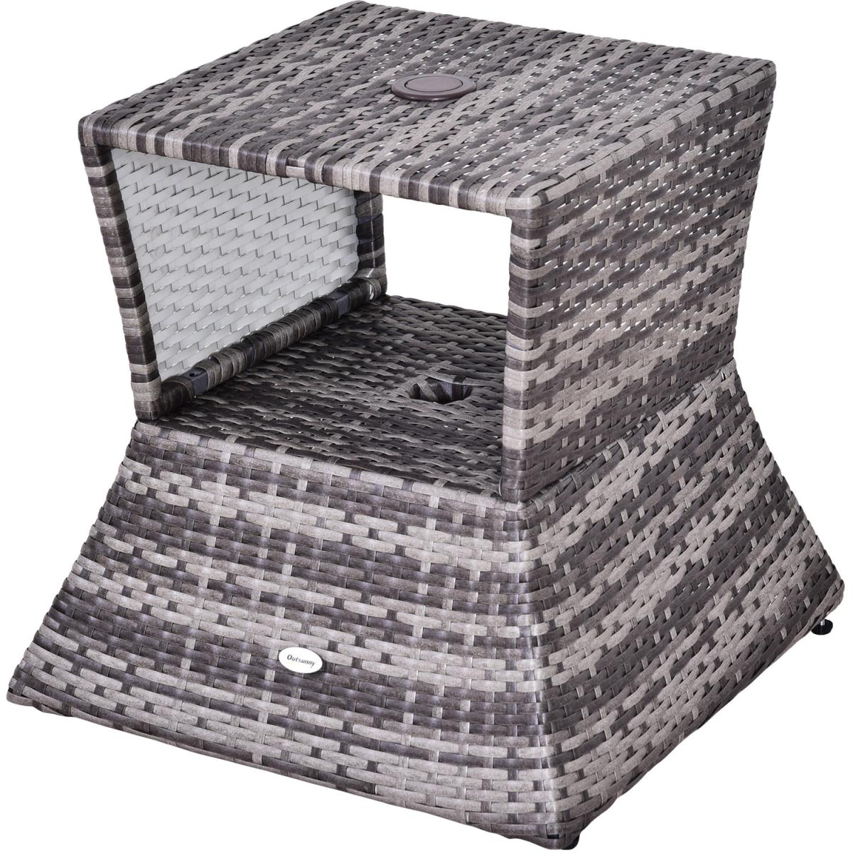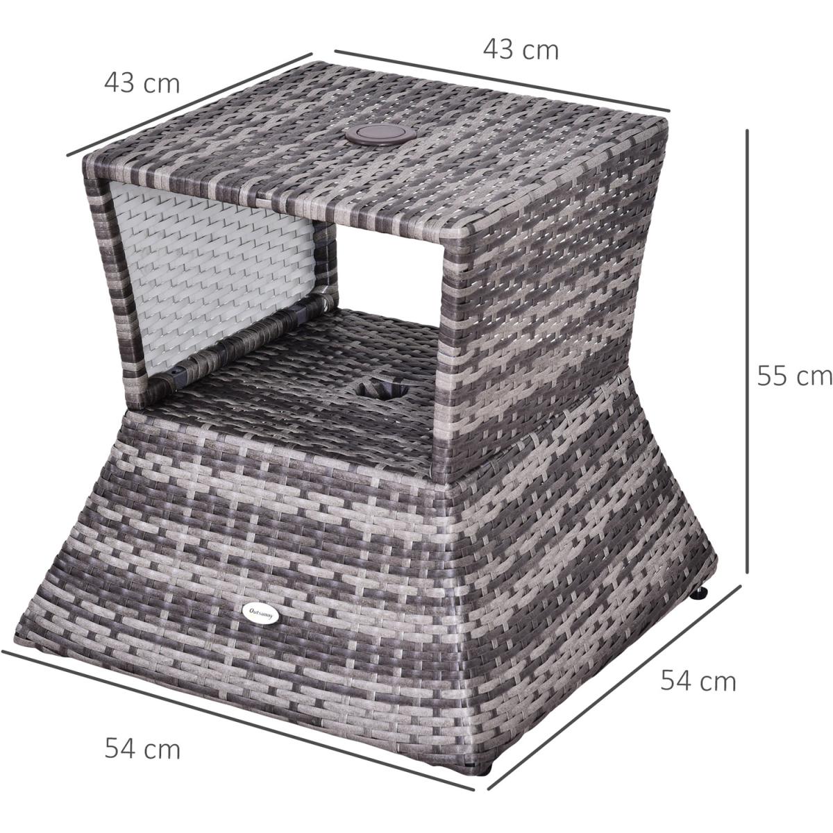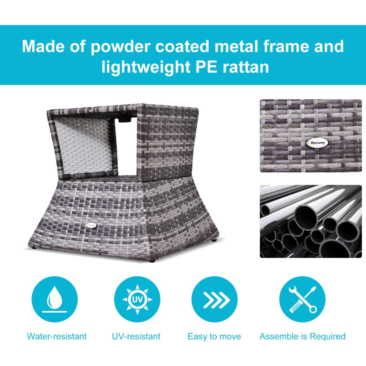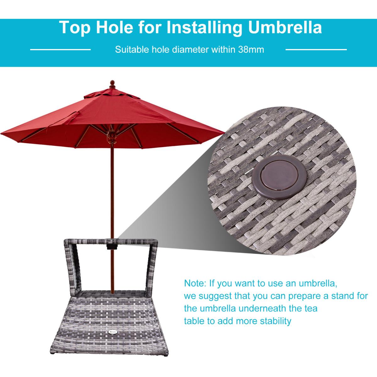 Bring a stylish feel to your coffee breaks with this rattan table from Outsunny. Made with weather-resistant PE wicker wrapped around a metal frame, this table has been built to withstand the weather, along with daily wear and tear to ensure it looks great for years to come. Easy to clean, it features a central hole to place a parasol umbrella, along with an open shelf in the middle to store your necessities when needed. It's a great addition to your garden, patio, conservatory or balcony.