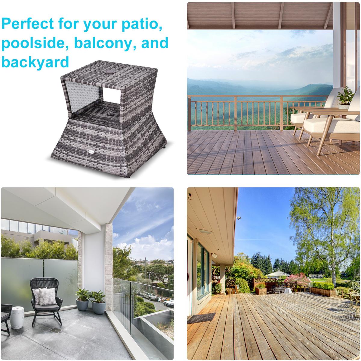 I’m a fan of this grey wicker side table for its neat, weather-resistant weave and compact shape - it slips easily between loungers or beside a bench without taking up much room. The mixed-grey tones work equally well in contemporary urban balconies, coastal hideaways or a Scandi-inspired garden, thanks to its neutral palette and clean lines. For styling, top it with a simple teak tray holding a couple of lanterns or a small plant in a monochrome pot, then add a folded throw or two on the seat next to it for texture. Its hollow form also provides a handy cubby for magazines or extra cushions, keeping your outdoor space looking tidy and inviting.