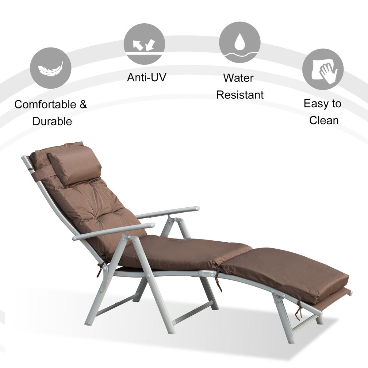 Bring classic comfort to your garden with the reclining garden chairs from Outsunny. Using sturdy and thick steel to form the frame, the garden sun lounger is able to handle up to 160kg, with its design featuring a seven-level adjustable back for in-control support, a thick, removable cushion seat for all-day comfort and a detachable pillow to give your head a spot to lean back on. Foldable in design, you can move and store the garden loungers very easily, making it convenient and functional.