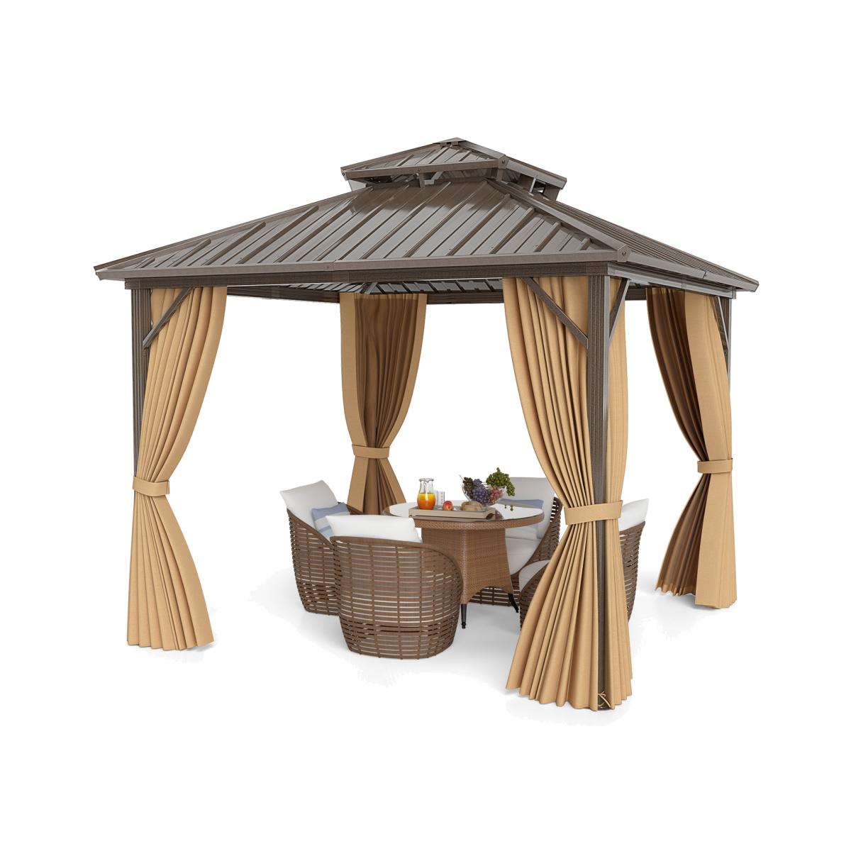 Our 290 x 290 cm hardtop gazebo comes with a double-layer galvanized metal roof, ensuring good ventilation while offering superior protection from sun, rain, wind, and snow, which is a perfect year-round heaven for outdoor gathering. The aluminum frame is engineered for durability and stability, resistant to rust and reinforced with anchoring plates, including 12 expansion screws for securing of concrete floors, ensuring it remains securely anchored in place even during rough weather. Outdoor Pergola Hardtop Gazebo - Brown