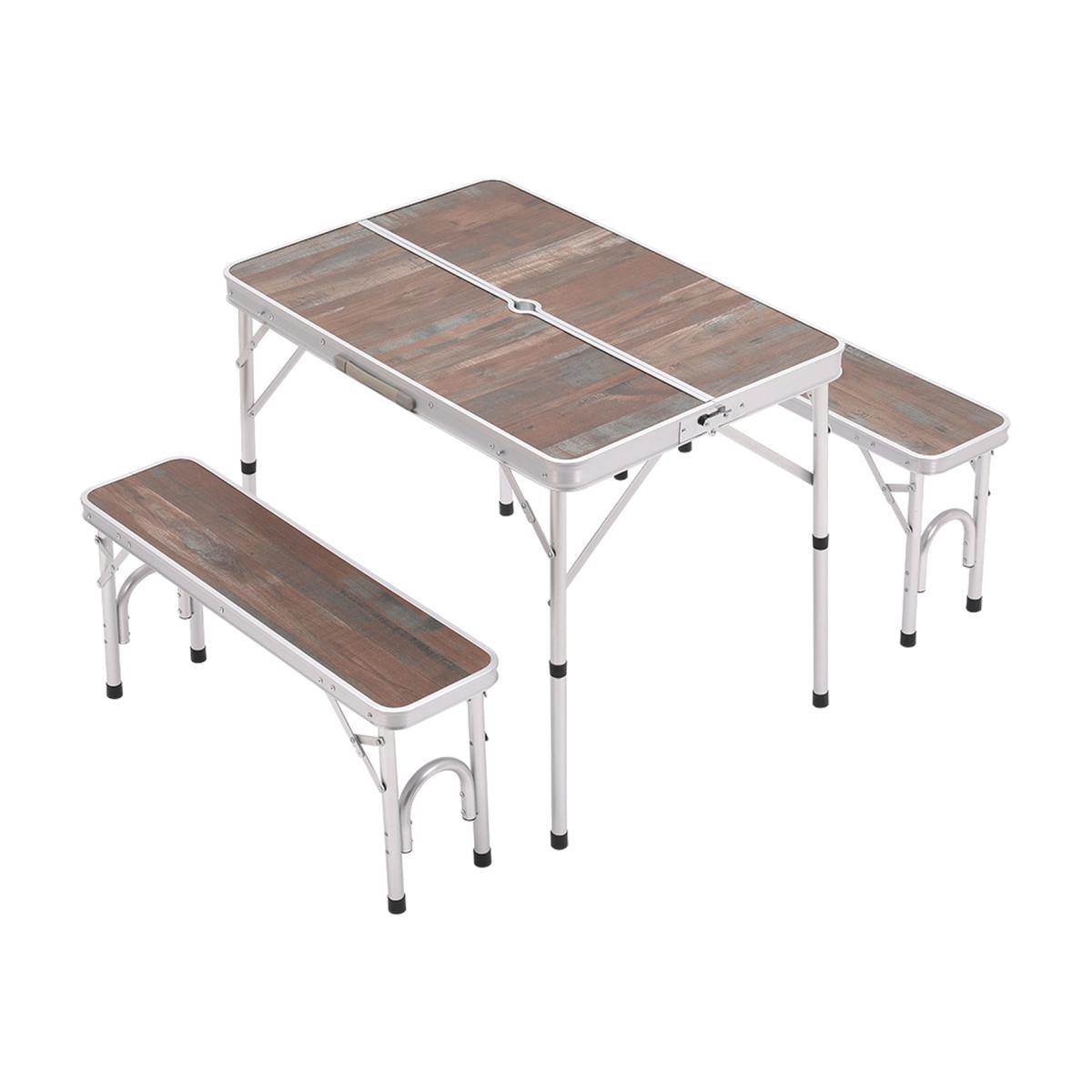 Elevate your outdoor experience with Livingandhome's Foldable Picnic Table and Bench Set with Parasol Hole. Crafted from high-quality aluminum and MDF, this set eliminates the need for constant maintenance, ensuring durability. The built-in parasol hole at the center allows you to shade the table on hot summer days, providing a comfortable outdoor space. The adjustable table height offers customization based on your preferences and needs, adding versatility to your outdoor gatherings. Outdoor Picnic Table with Two Benches Set - Brown
