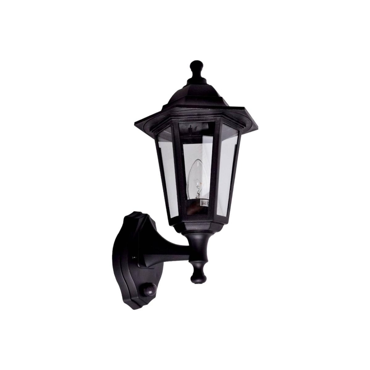 Outdoor PIR black wall light. Add a vintage edge to your outdoor areas with the Outdoor PIR Wall Light. This light has a retro lantern design made from a robust polypropylene in a black finish. For those that are safety conscious, an integrated motion sensor allows you to have that extra piece of mind. Style this light with one of our vast selection of LED E27 light bulbs.