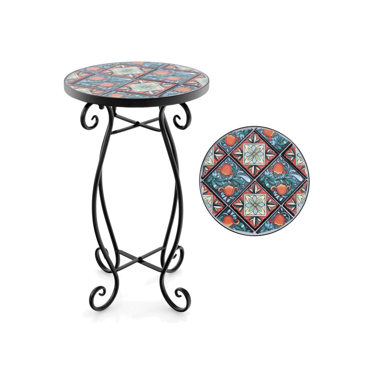 Outdoor Plant Stand Mosaic Round Side Table - multi-color