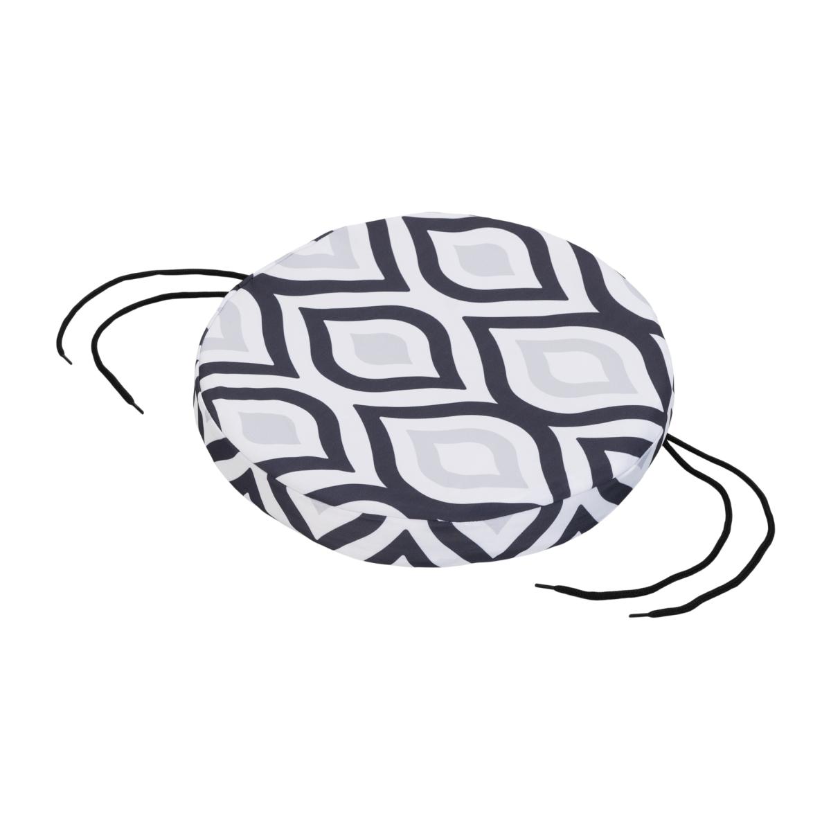 Outdoor Printed Round Chair Seat Pad with Ties - Black/Grey