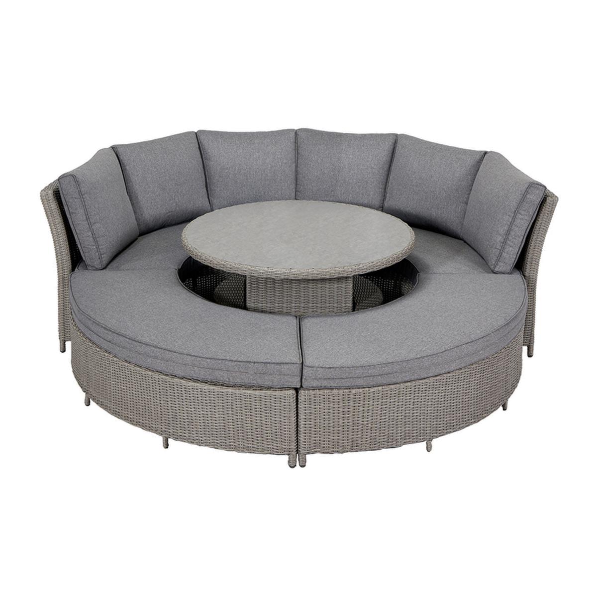 Outdoor Rattan Day Bed Dining Set With Ceramic Table Top - Grey