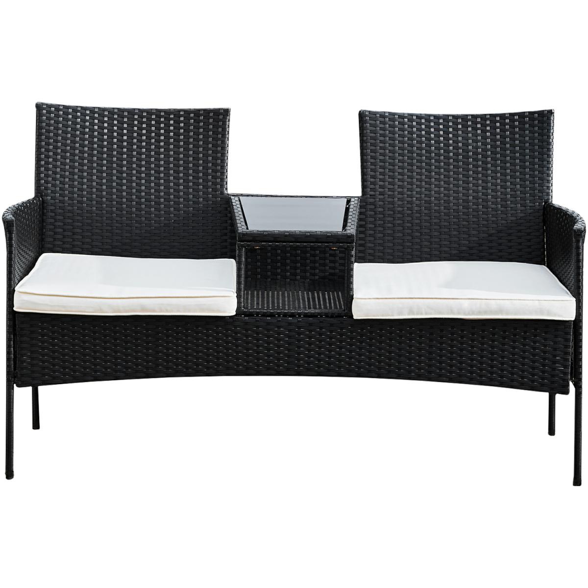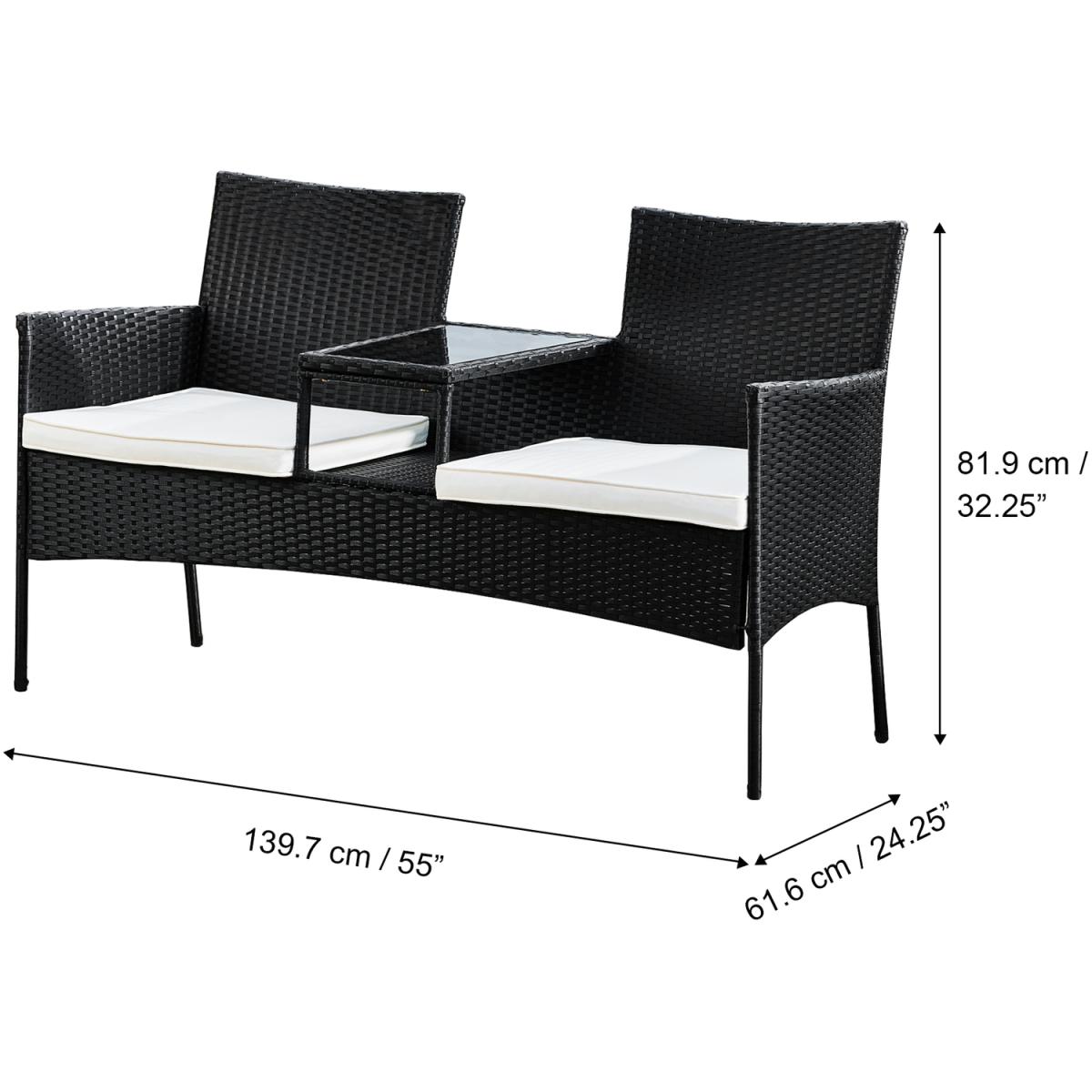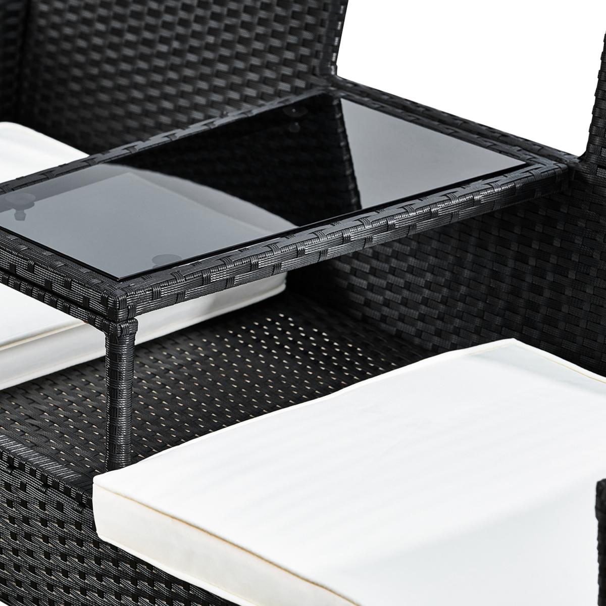 Outdoor Rattan Loveseat with Table and Cushions - Black