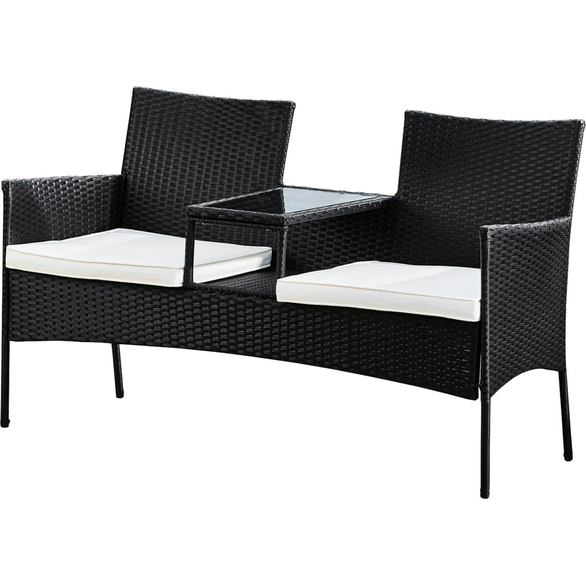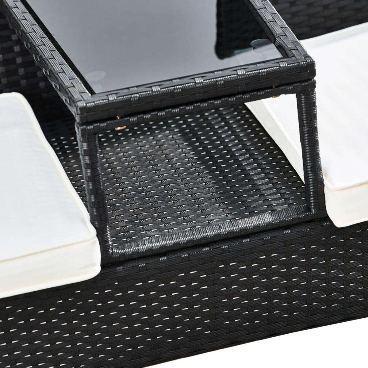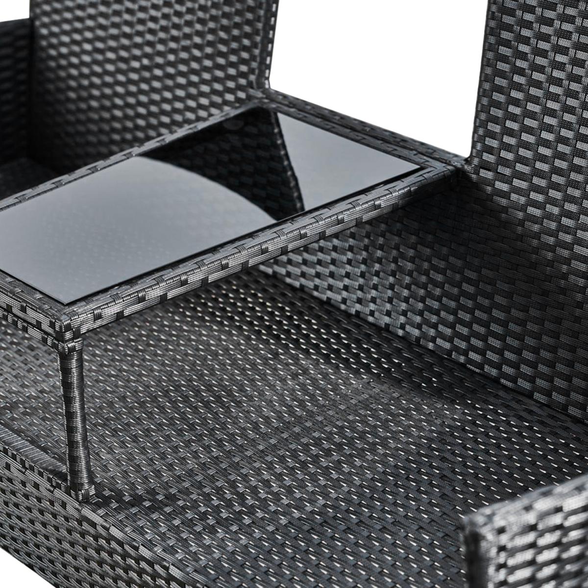 Outdoor Rattan Loveseat with Table and Cushions - Black
