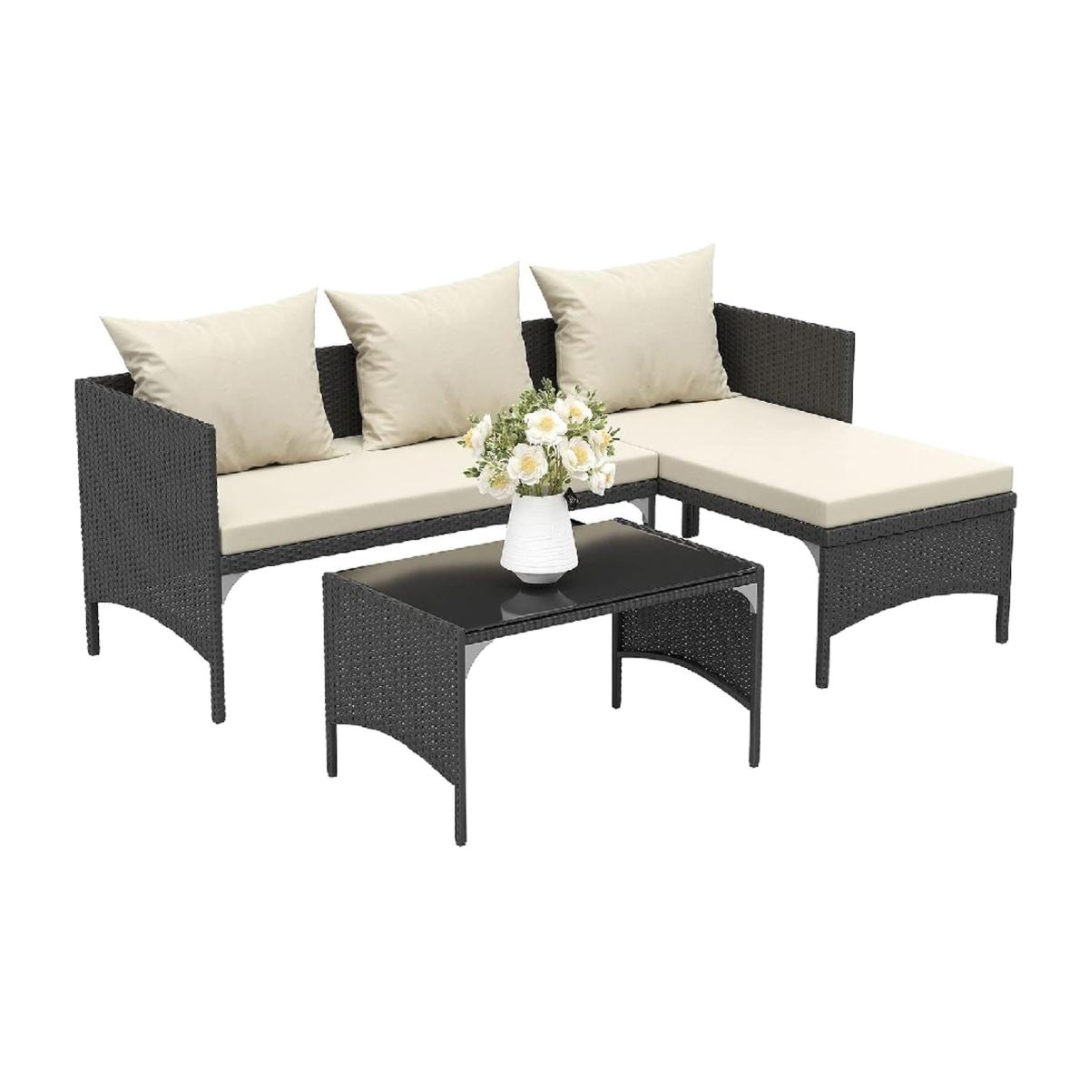 This outdoor furniture set is a great decoration for your patio, garden, deck, backyard, porch, or even poolside. Relax in the sunshine sitting or lying with your family or friends. A strong frame provides beauty and durability for years of enjoyment. This set brings a modern look to your patio or backyard while giving your outdoor space a natural feel. Outdoor Rattan Patio Furniture Set for Porch Garden - Black
