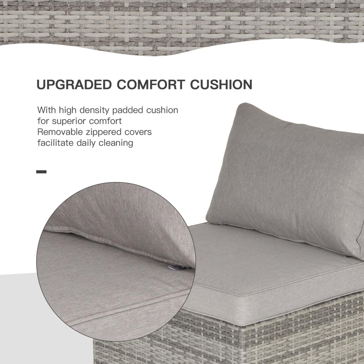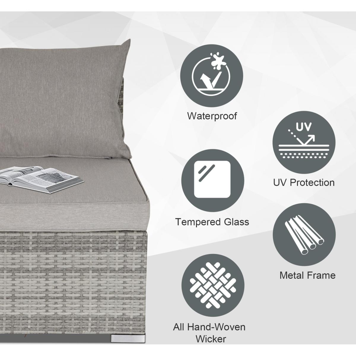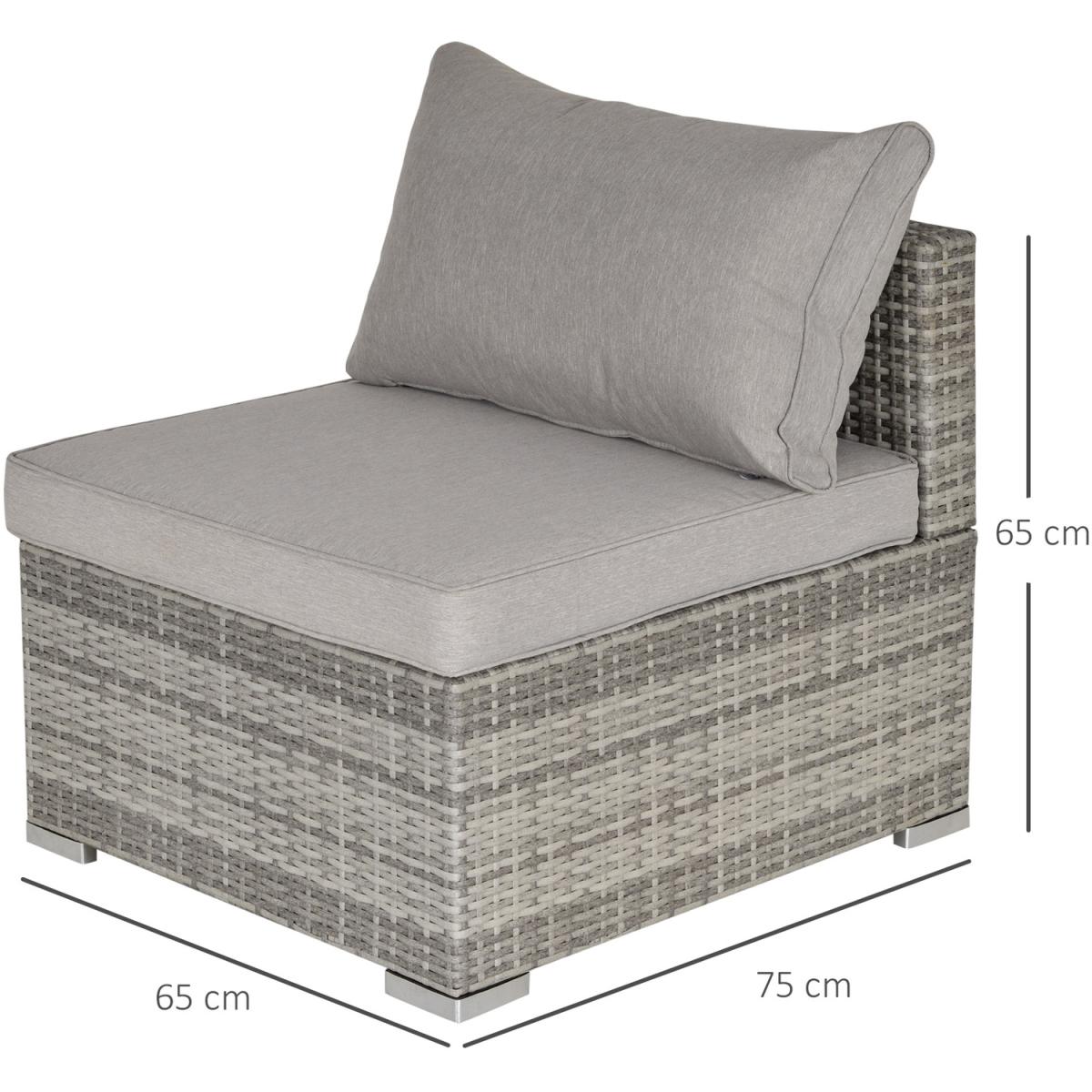 This single middle sofa chair by Outsunny is a modern and trendy outdoor patio furniture that provides the user the unique reconfigurable design, offers comfortable and exceptionally stunning outdoor relax and sit. This PE rattan wicker single middle sofa can be used alone or in combination. You can arrange the perfect shape to match your deck or garden. It is perfect for the pool side, deck or patio, its cushioned seat will let you and your guests to sit back, relax and enjoy the great outdoors.