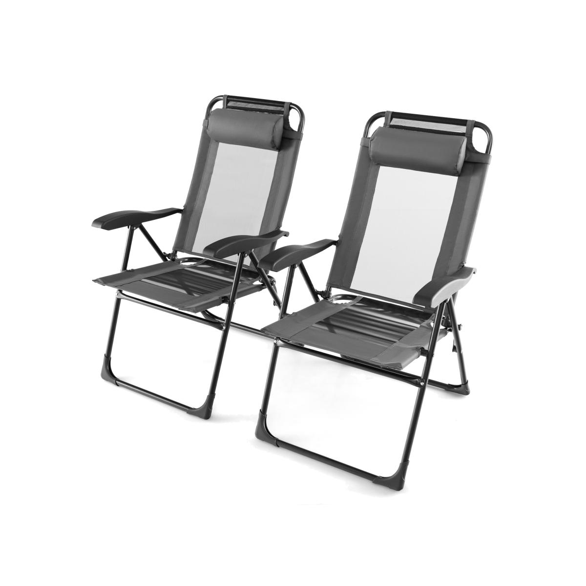 Including two garden reclining chairs. The weatherproof Oxford cloth and breathable mesh nylon provide a skin-friendly seating area. When not in use, you can fold them into a compact size, which is convenient for storage. Suitable for various outdoor occasions, these chairs bring comfort and convenience to your daily life. Outdoor Reclining Chair Set of 2 - Grey