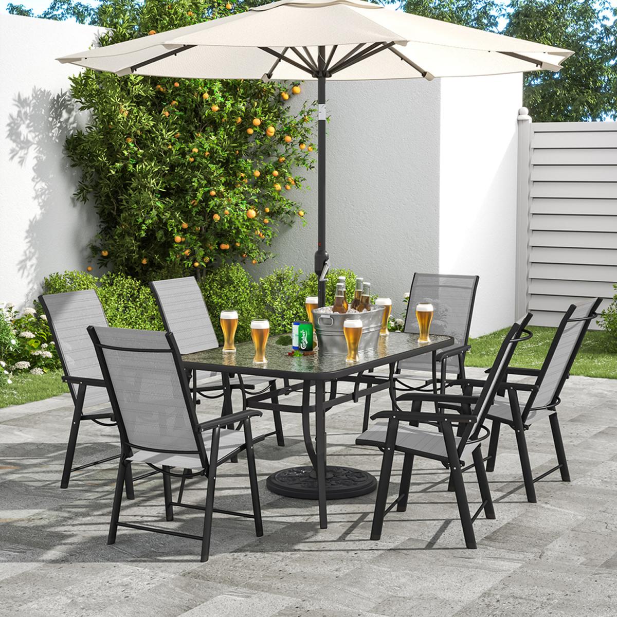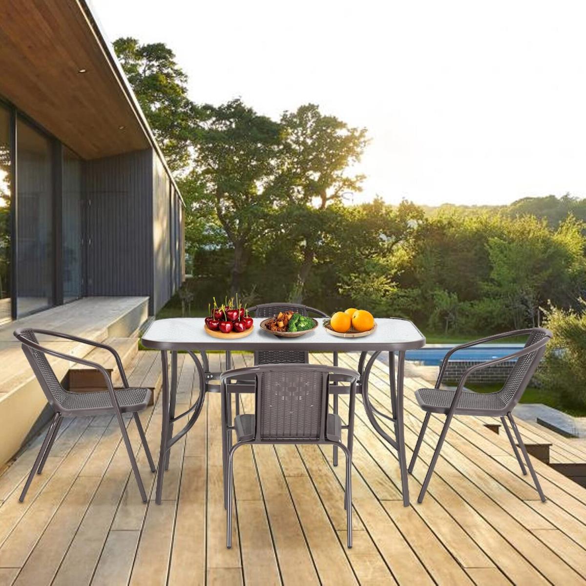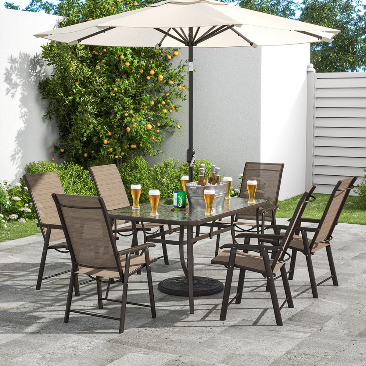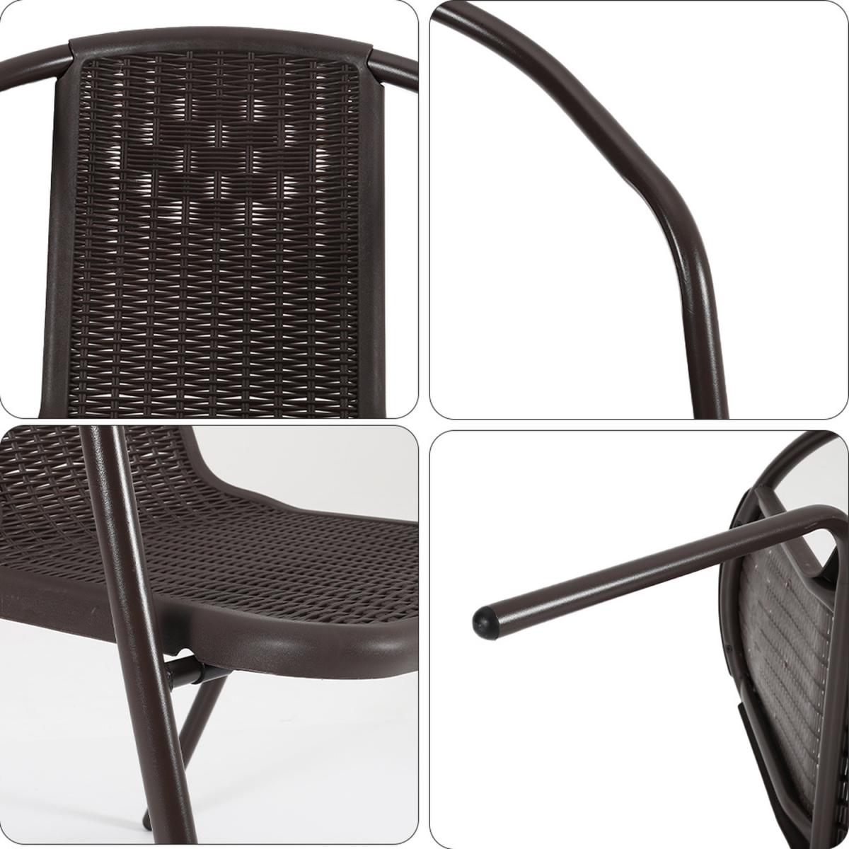 Our patio bistro dining set will be perfect for your outdoor, indoor life. Made of solid steel frame with durable, weather-resistant material for years of use. The chairs are completely weatherproof with UV protection. Matched with a coffee table that has a tempered glass top for you to put snacks, drinks, brunch, and magazines on it. All edges of chairs and table are rounded-corner to protect you from being injured. This patio bistro furniture is the best choice for you to enjoy yourself with your friends or families in your garden, poolside, backyard or balcony.
