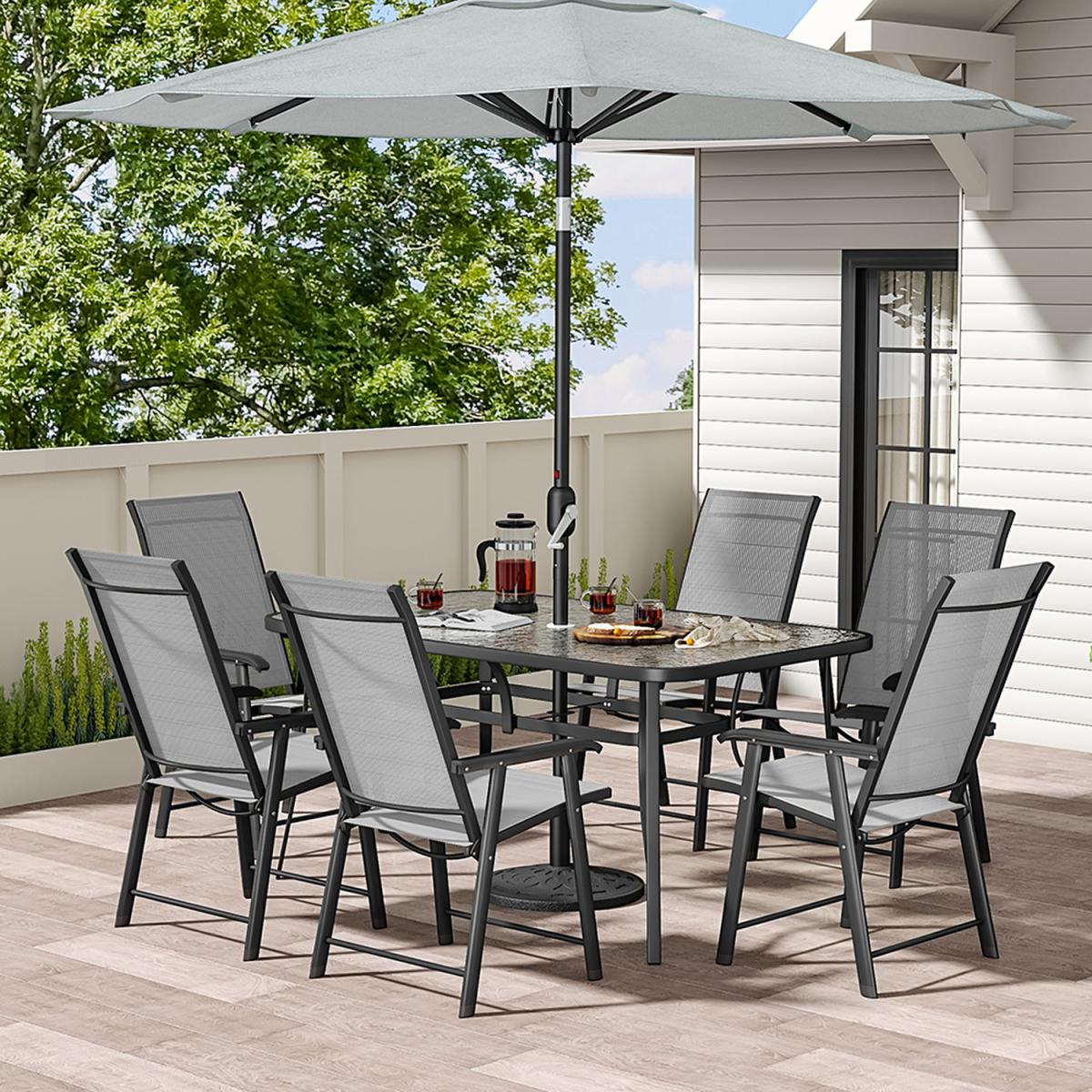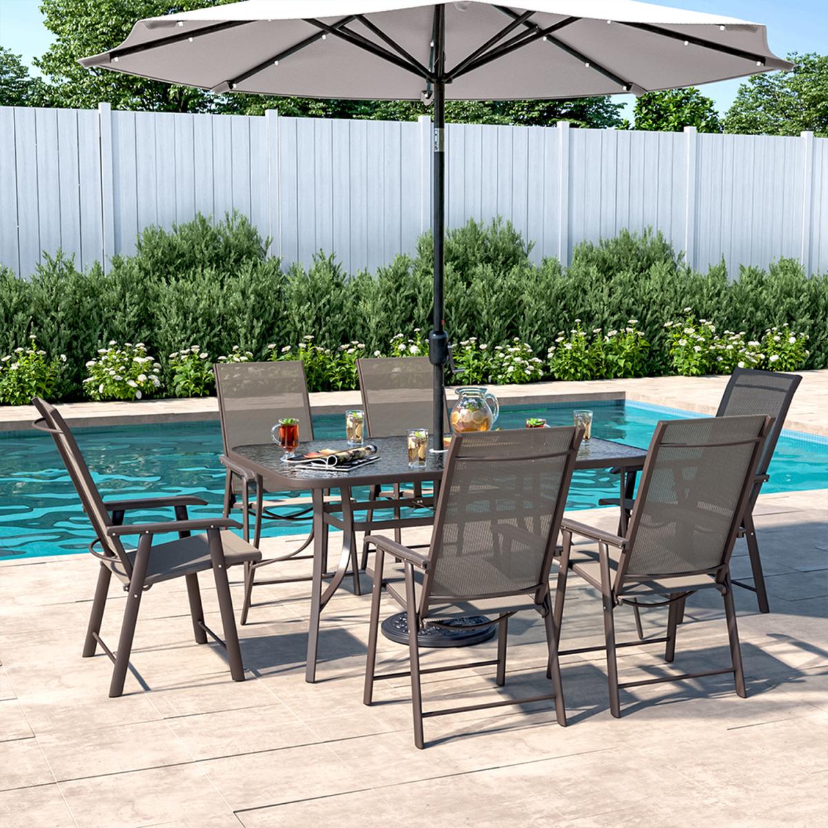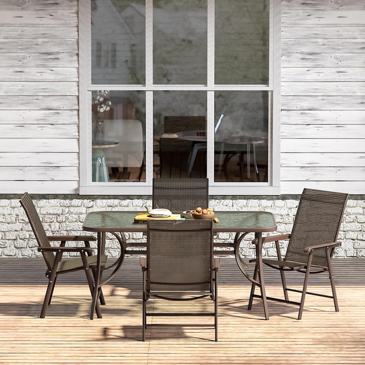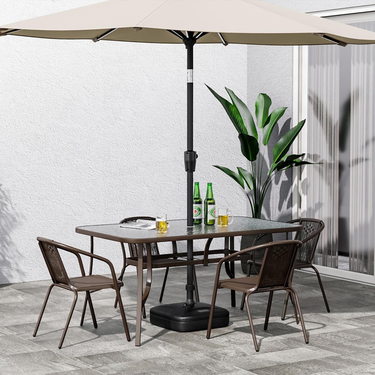 Our patio bistro dining set will be perfect for your outdoor, indoor life. Made of solid steel frame with durable, weather-resistant material for years of use. The chairs are completely weatherproof with UV protection. Matched with a coffee table that has a tempered glass top for you to put snacks, drinks, brunch, and magazines on it. All edges of chairs and table are rounded-corner to protect you from being injured. This patio bistro furniture is the best choice for you to enjoy yourself with your friends or families in your garden, poolside, backyard or balcony.