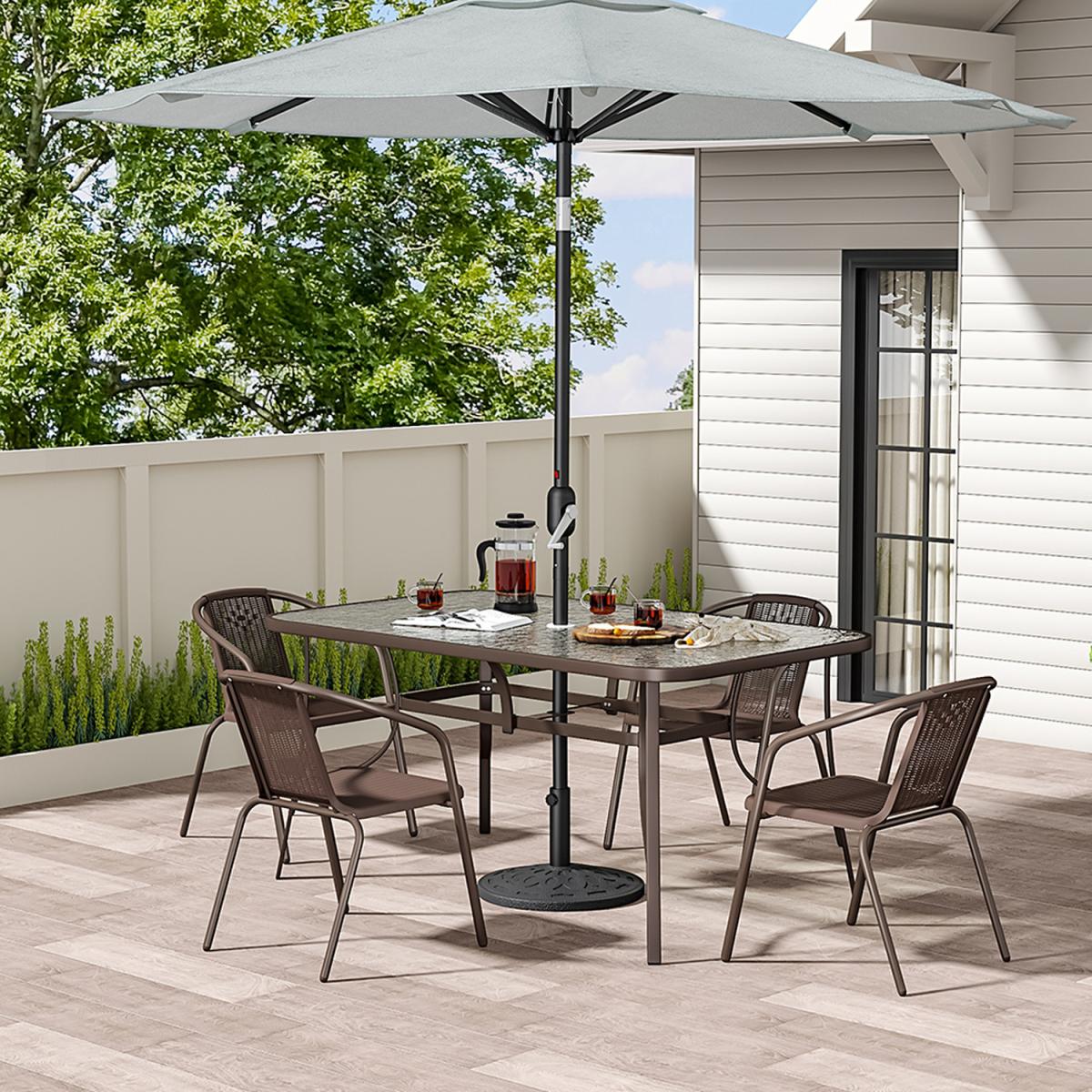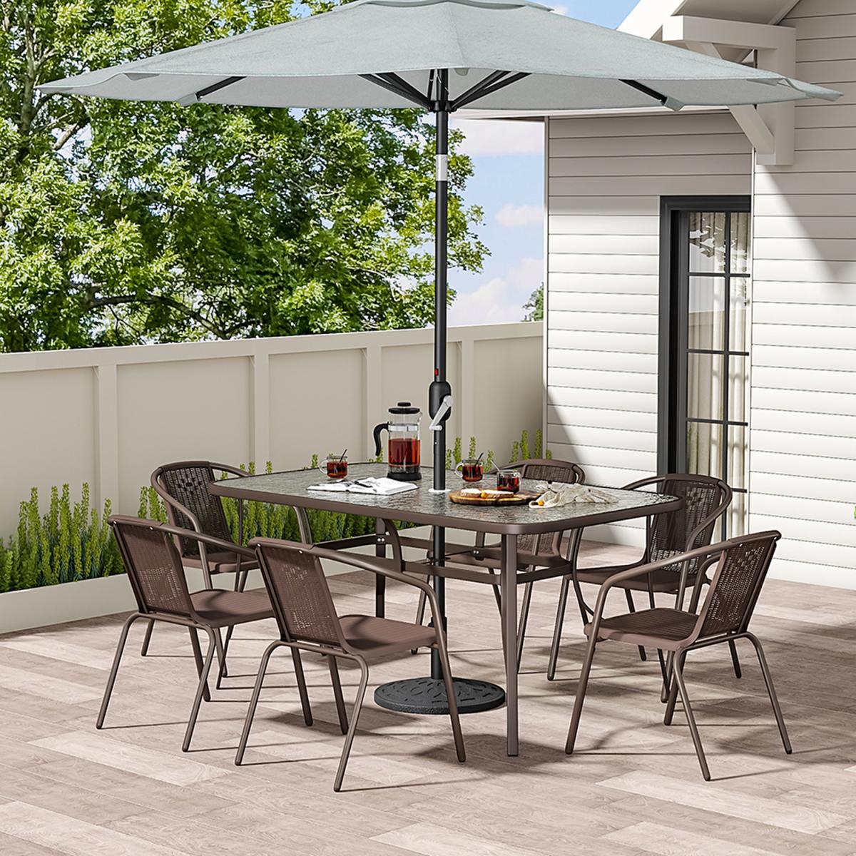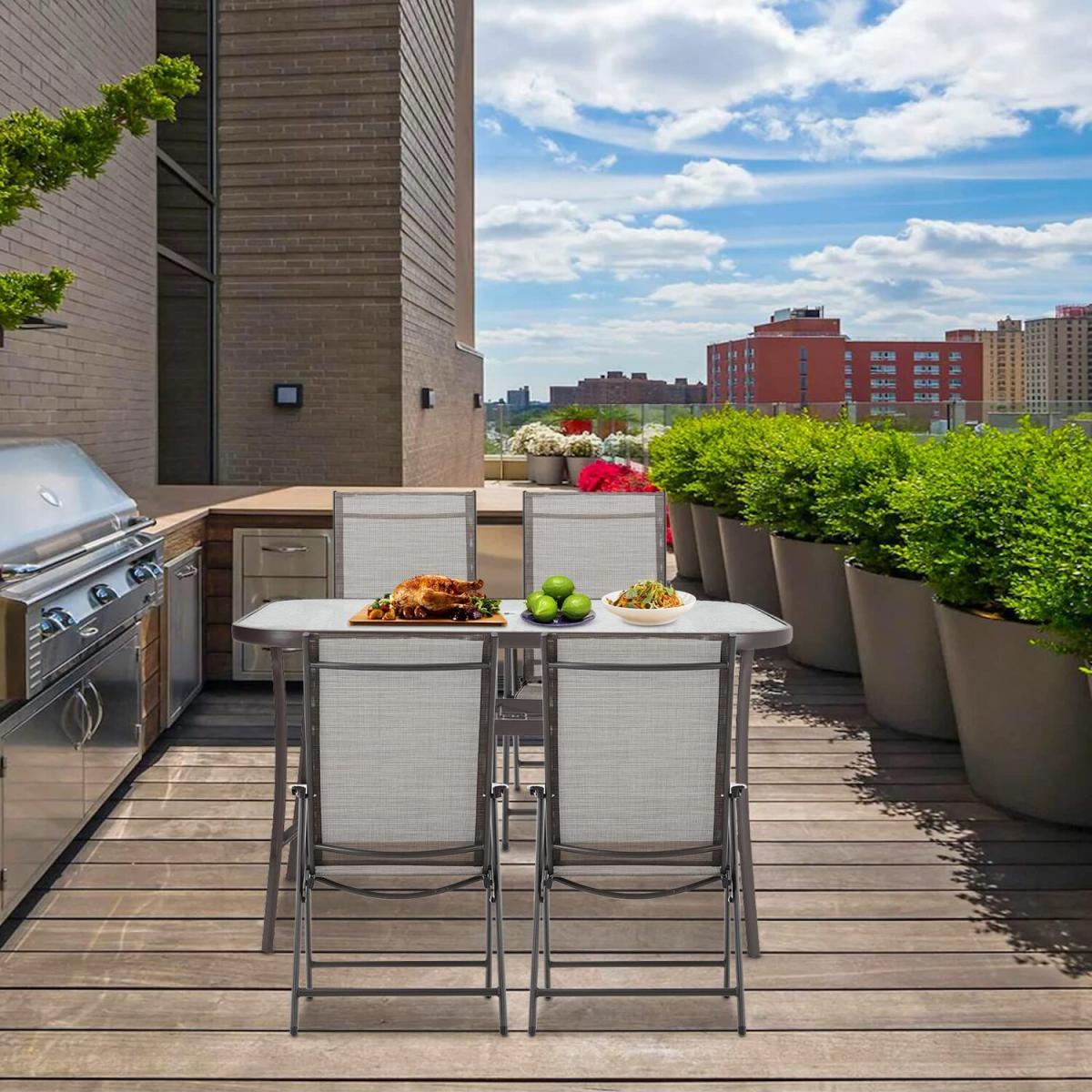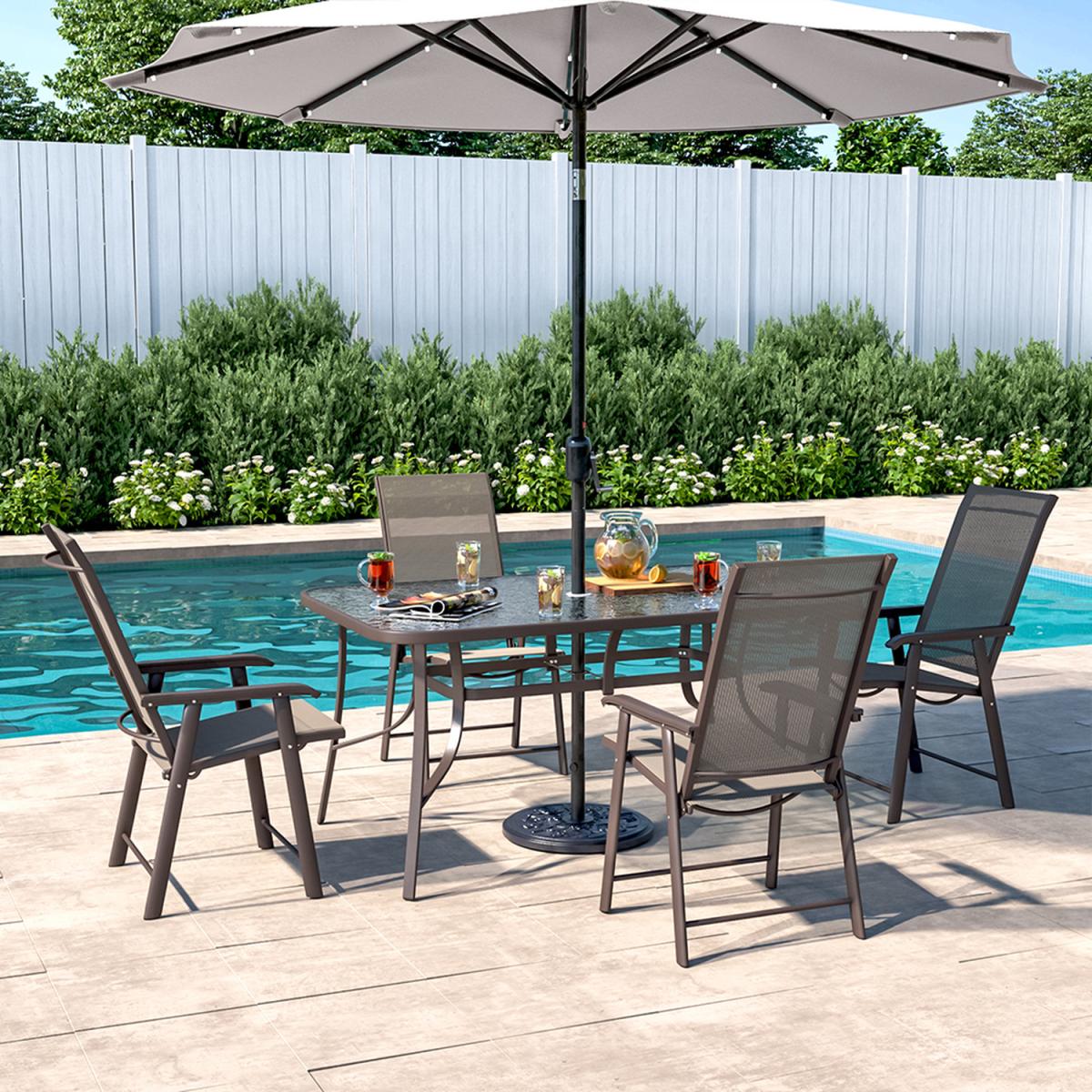 Our patio bistro dining set will be perfect for your outdoor, indoor life. Made of solid steel frame with durable, weather-resistant material for years of use. The chairs are completely weatherproof with UV protection. Matched with a coffee table that has a tempered glass top for you to put snacks, drinks, brunch, and magazines on it. All edges of chairs and table are rounded-corner to protect you from being injured. This patio bistro furniture is the best choice for you to enjoy yourself with your friends or families in your garden, poolside, backyard or balcony.
