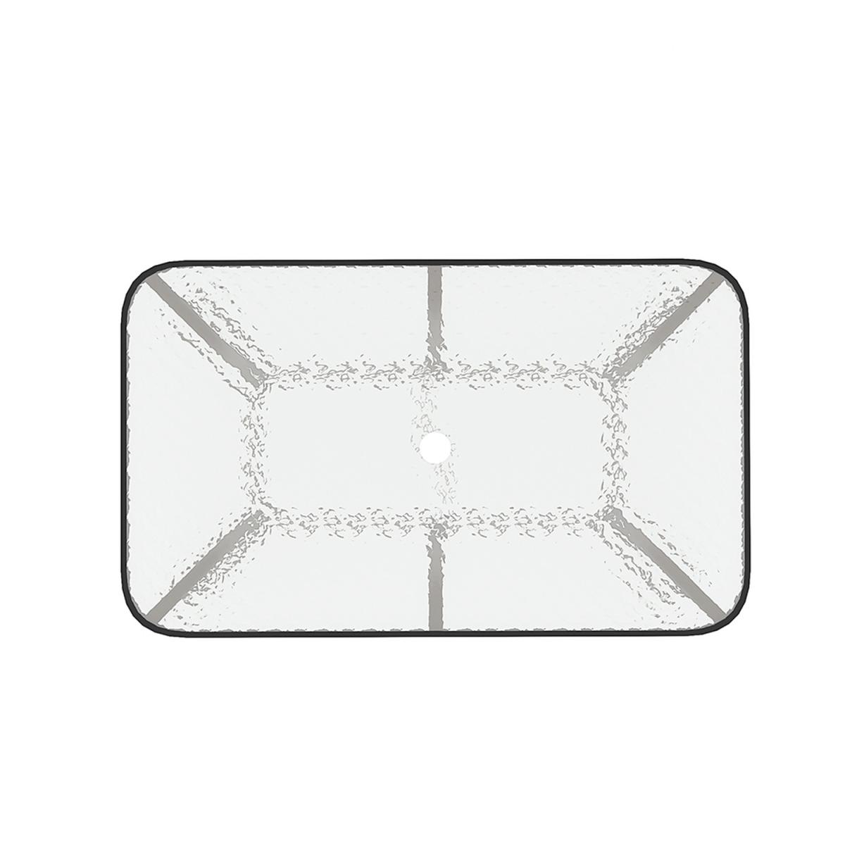 Transform your outdoor areas with this elegant table. Inspired by simple geometry, the metal frame blends seamlessly into its rippled glass surface. There's a hole in the middle of the table, where you can place a parasol to protect you from the sunlight. In a contemporary style, it's perfect to compliment your garden or balcony.