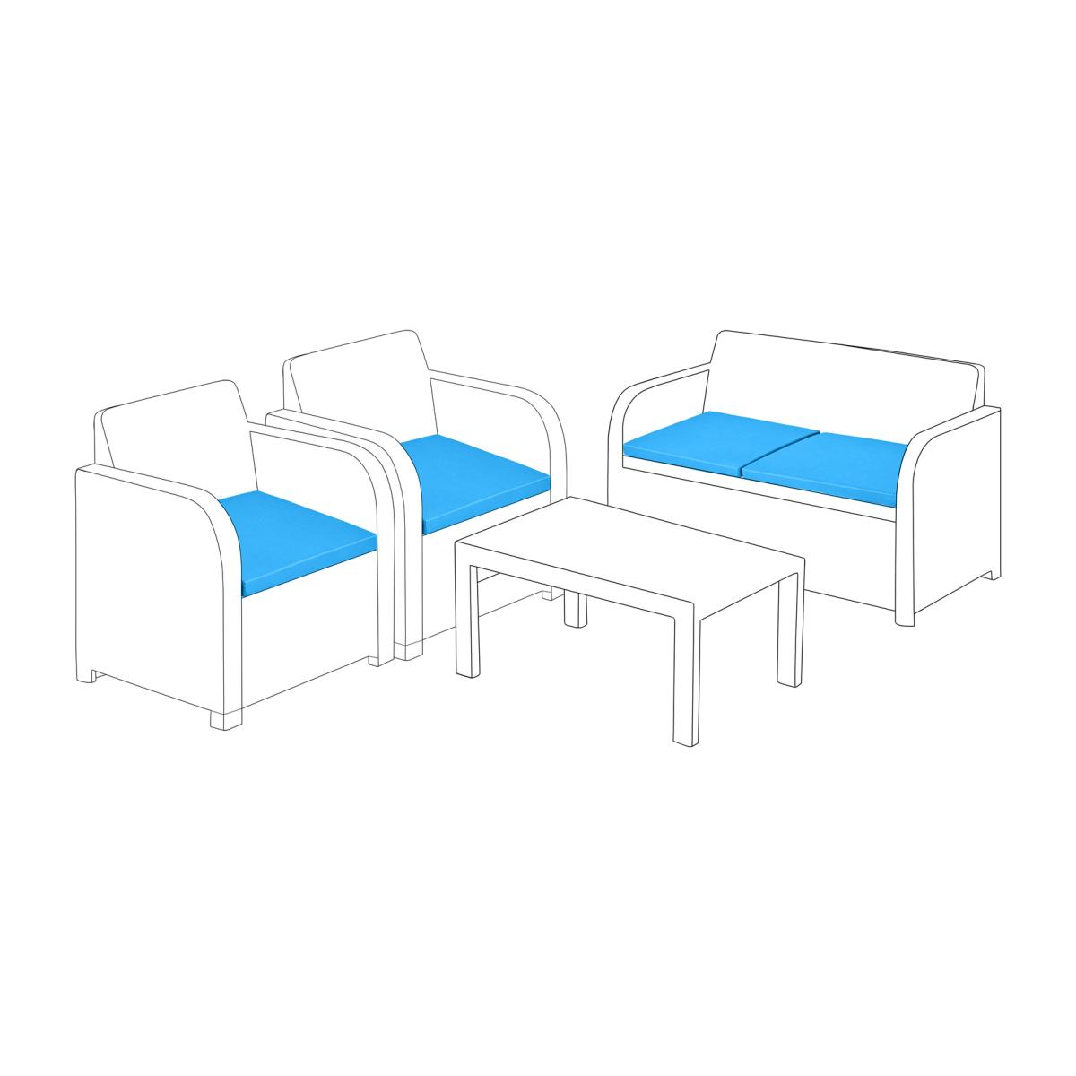 The Gardenista seat cushion pads are a 4-piece set made of premium 100% polyester and are fire retardant. The set includes 2 pads for the sofa and 2 pads for the chairs. The sofa pads have dimensions of 56cm in width, 50cm in depth, and 5cm in thickness, while the chair pads are 50cm in width, 50cm in depth, and 5cm in thickness. These comfy and durable replacement cushions, made for Keter Allibert Carolina furniture, are perfect for adding extra comfort to your patio furniture. Outdoor Replacement 4pc Rattan Cushion Pads - Turquoise