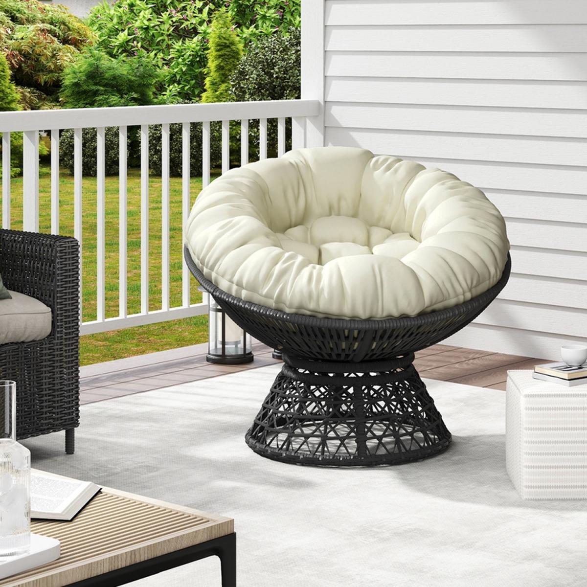 Outdoor Rounded Swivel Chair with Thick Tufted Cushion - Beige