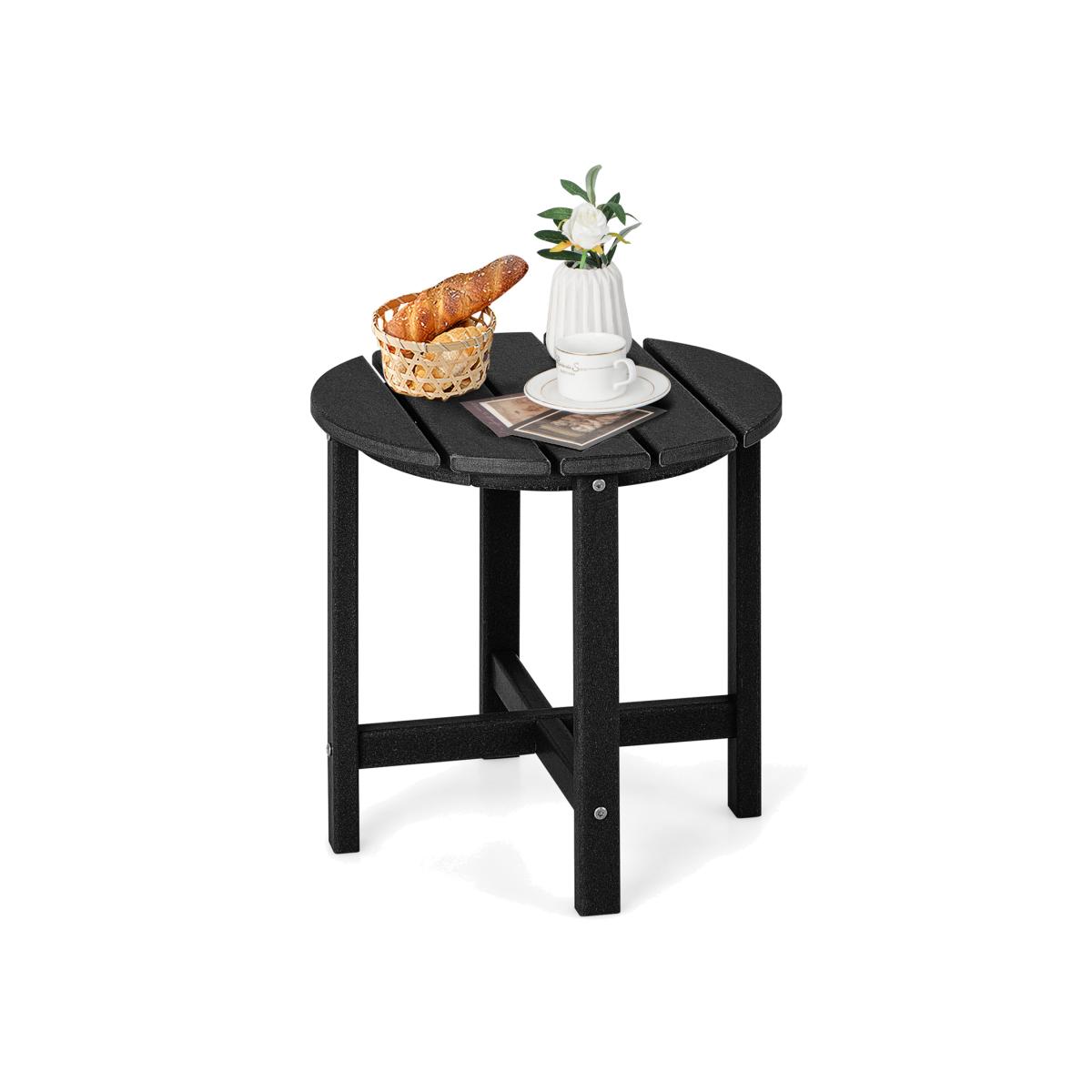 With its 46cm appropriate height, this end table fits your chairs and sofas perfectly. What's more, the premium HDPE material makes this outdoor Adirondack table weather-resistant, fade-resistant, sun-protective and waterproof to withstand outdoor changing weather better. Furthermore, this patio side table does not need painting, staining, waterproofing or other maintenance. Just clean it with water or soap. Outdoor Side Table HDPE Adirondack Table - Black