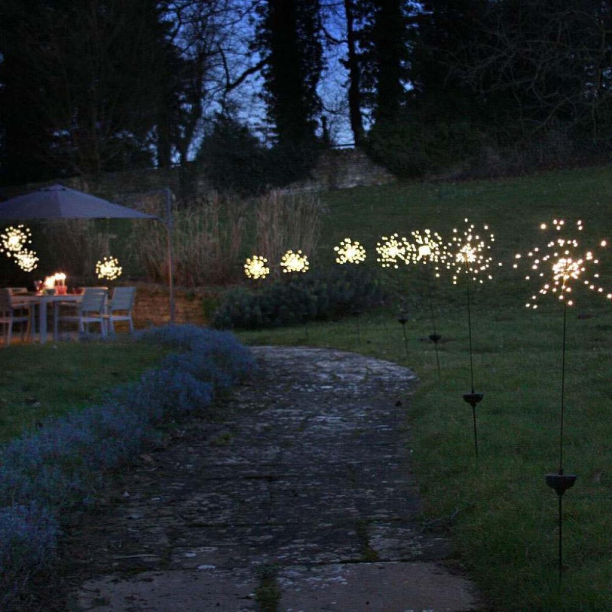 I love the outdoor starburst lights for their modern yet understated charm, making them a versatile addition to any garden or patio. They work particularly well in contemporary or minimalist outdoor spaces, but can also add a playful touch to more traditional settings. Practical styling tips include grouping a few along pathways or around outdoor dining areas to create a warm, inviting glow. Their solar feature means they’re eco-friendly and easy to position without the need for wiring, perfect for adding functional ambience without fuss. These lights can seamlessly transition from day to night, enhancing your outdoor decor while providing subtle illumination for gatherings or quiet evenings outside.
